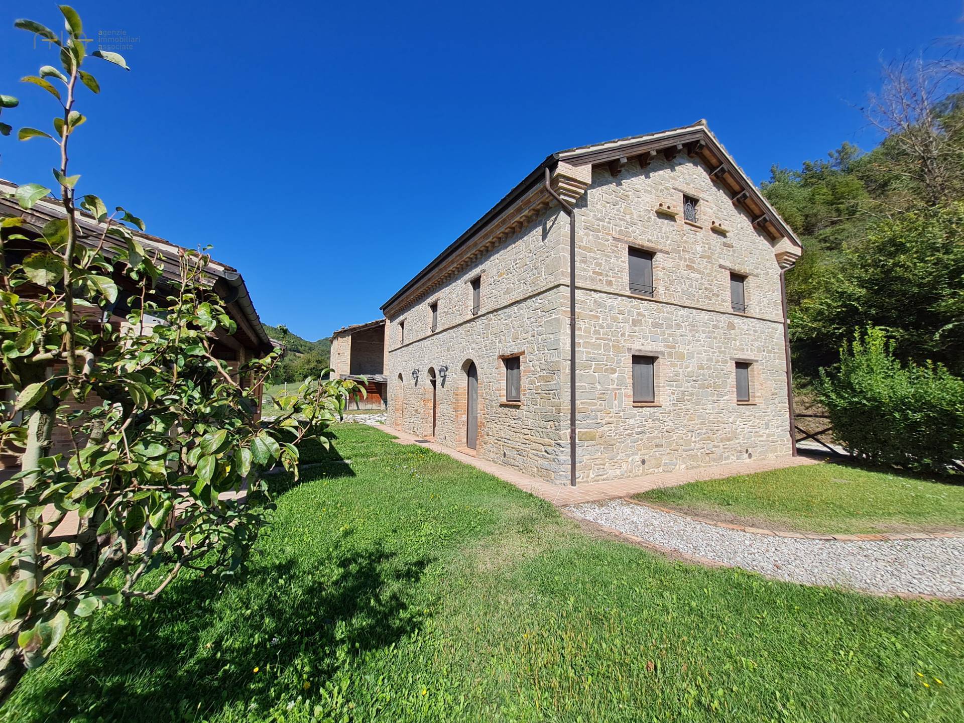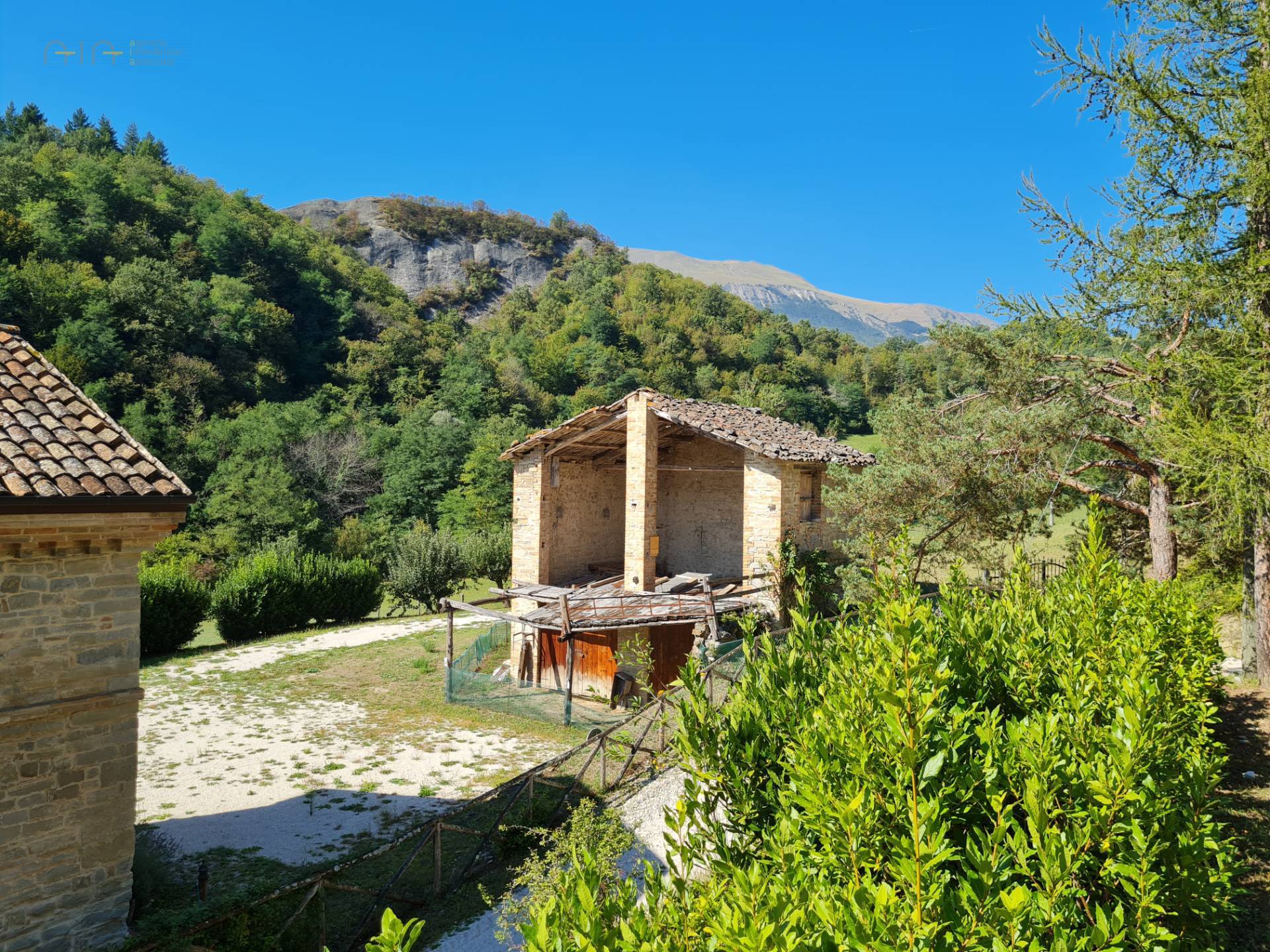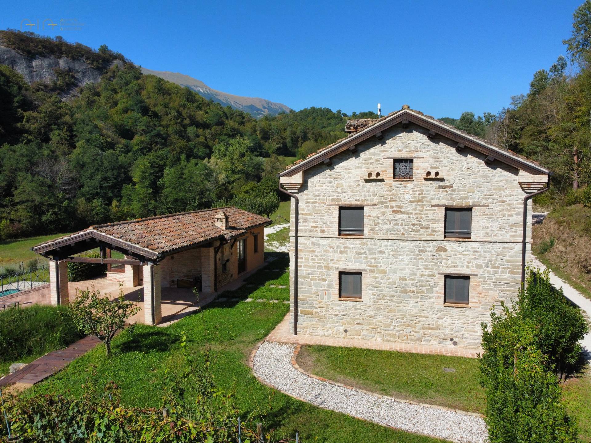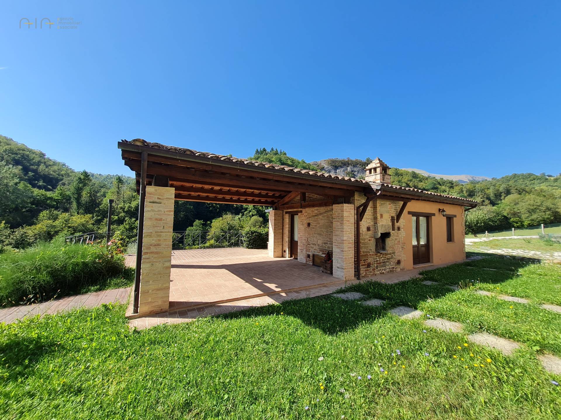 In the amazing setting of the Sibillini Mountains and a couple of km from the medieval village of Amandola, characteristic and ancient restored property, consisting of a main farmhouse, swimming pool, two annexes and a large garden.