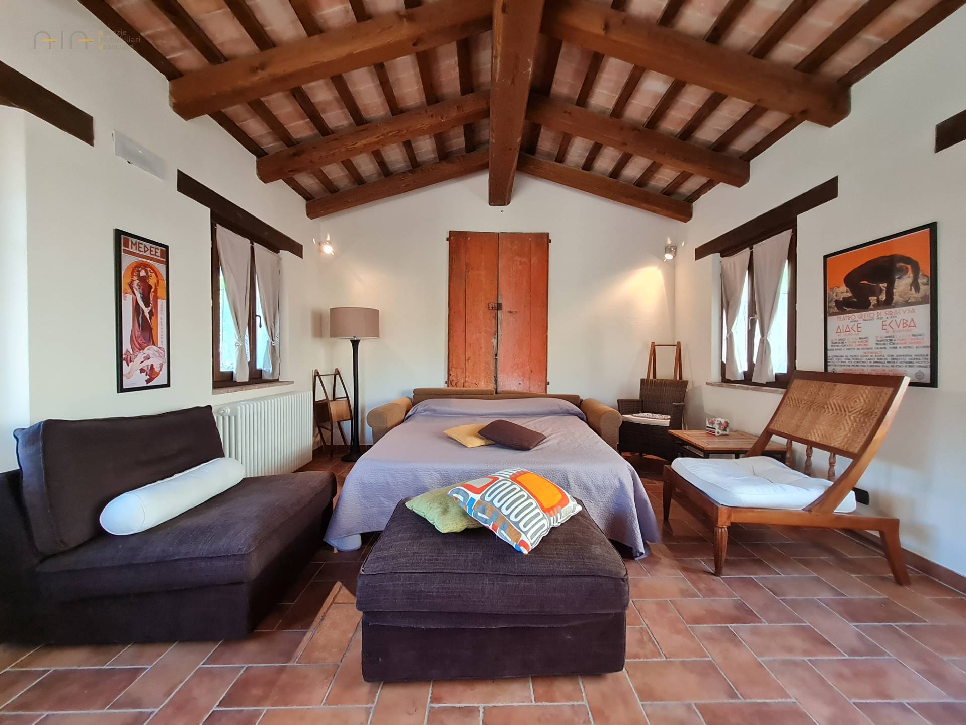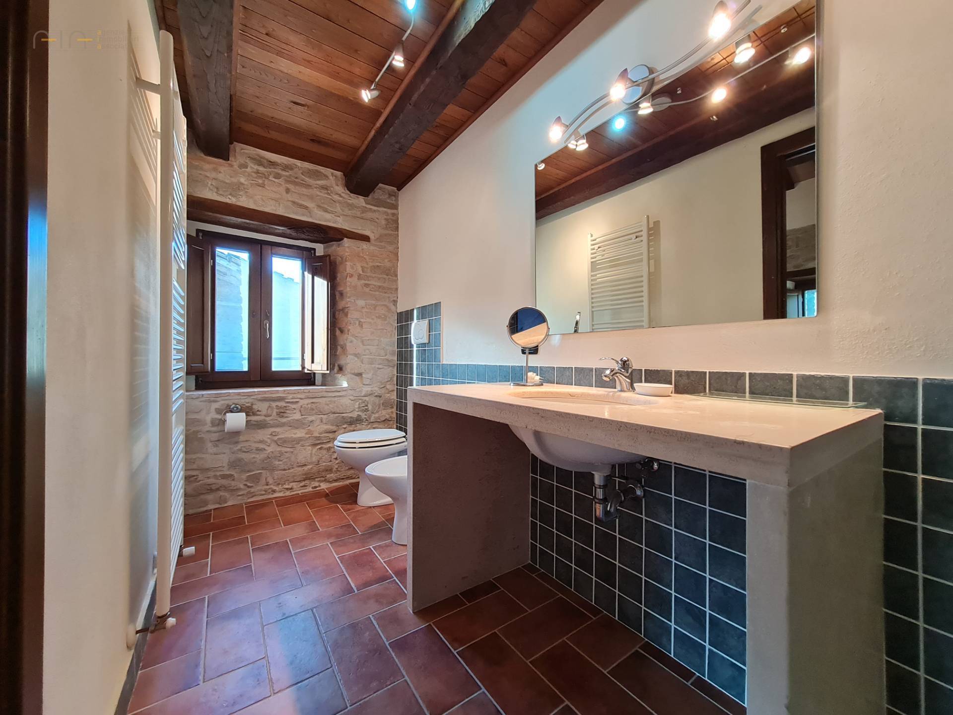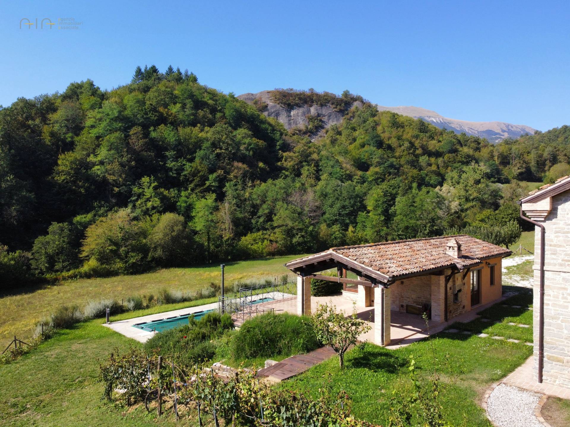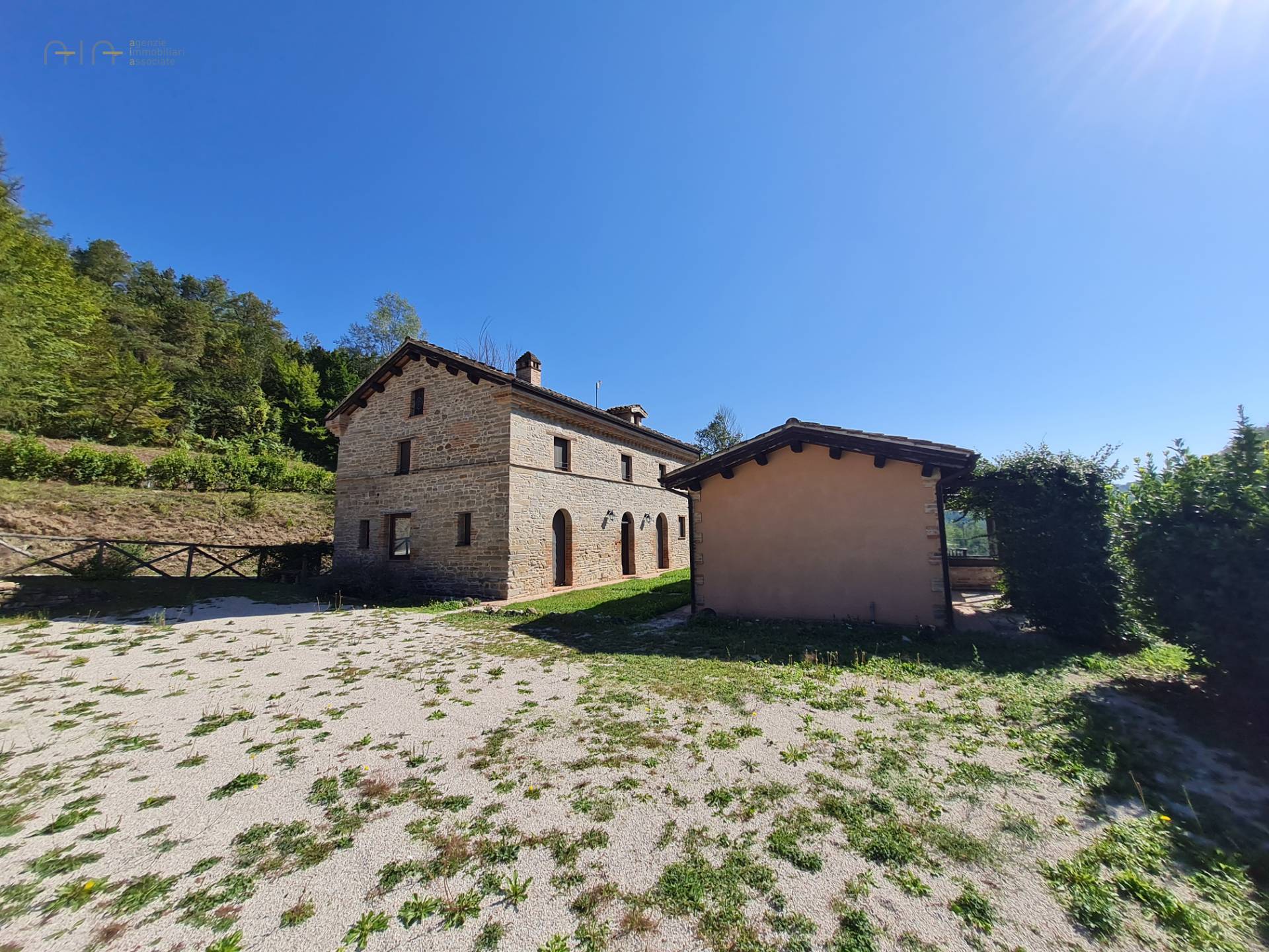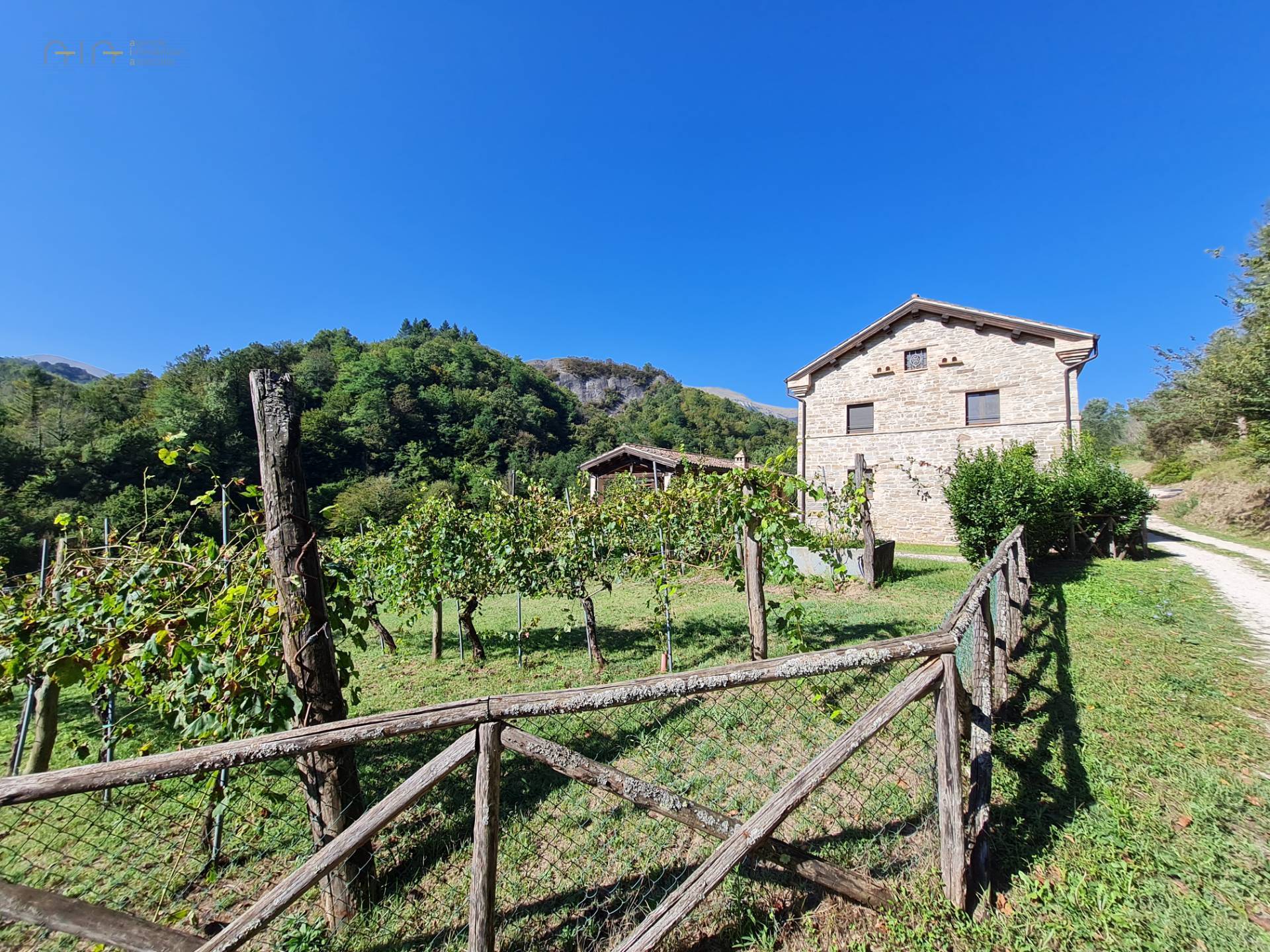 In the amazing setting of the Sibillini Mountains and a couple of km from the medieval village of Amandola, characteristic and ancient restored property, consisting of a main farmhouse, swimming pool, two annexes and a large garden.