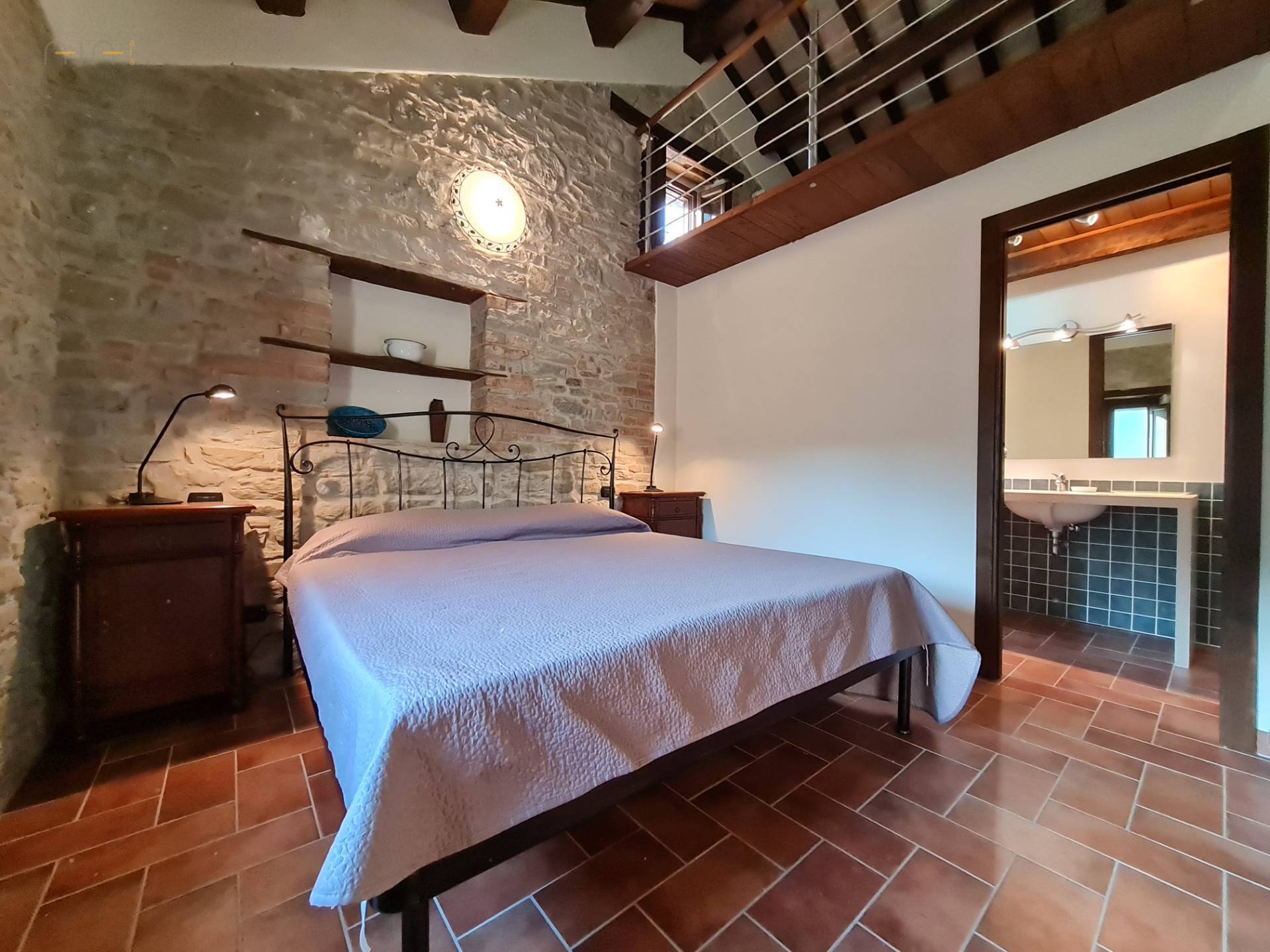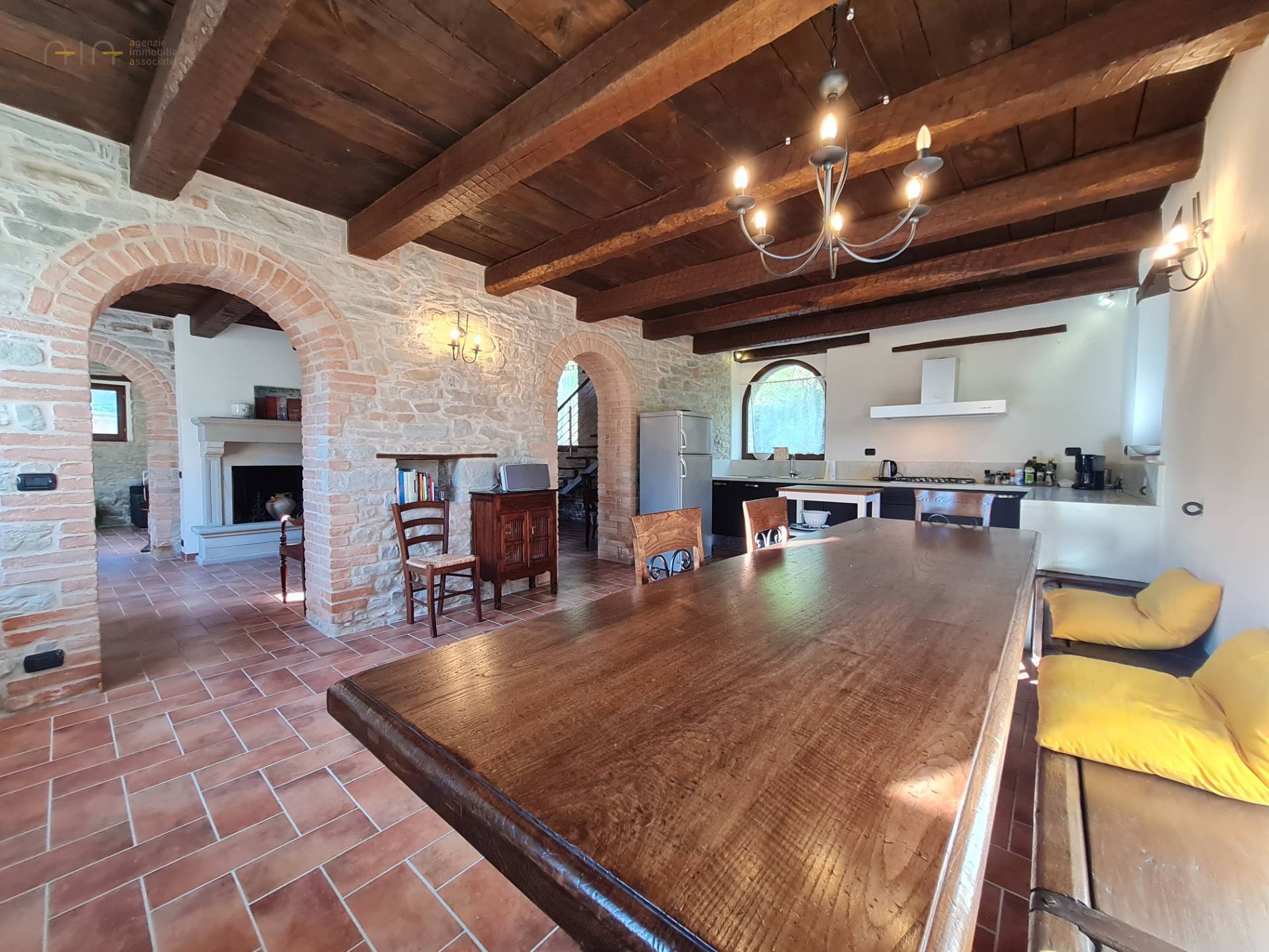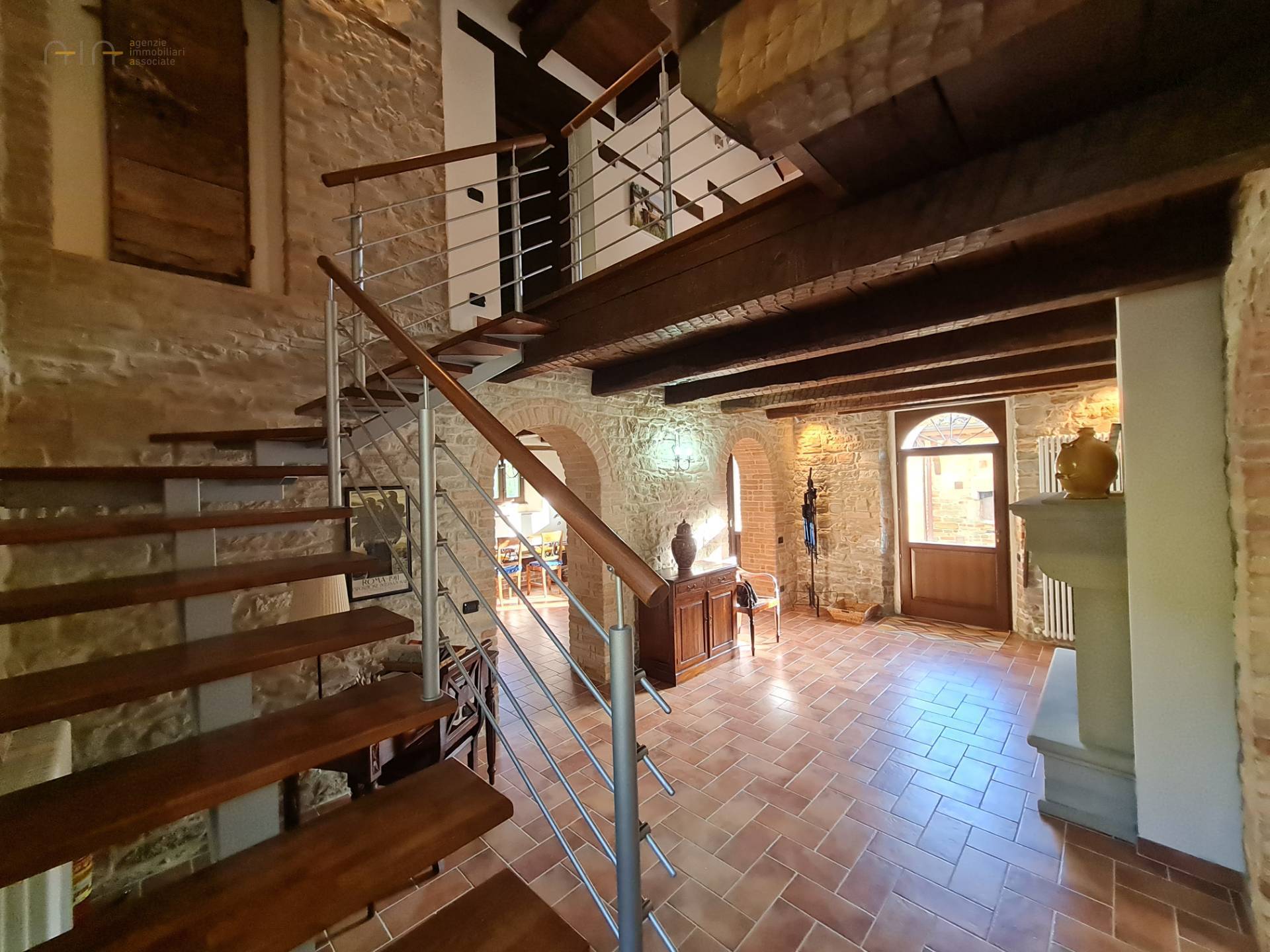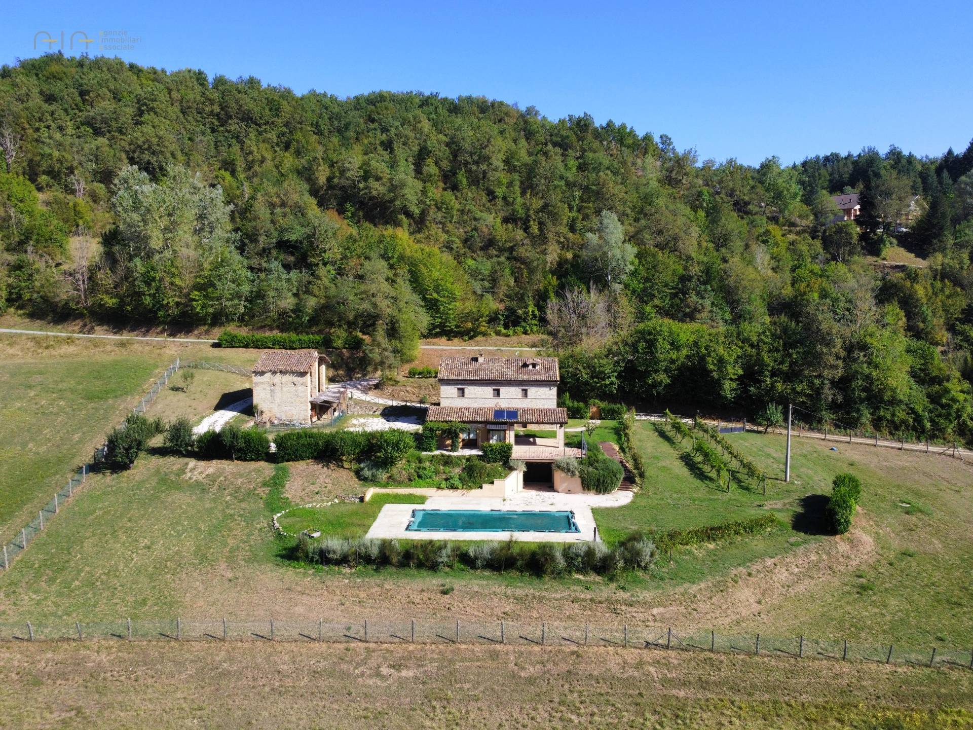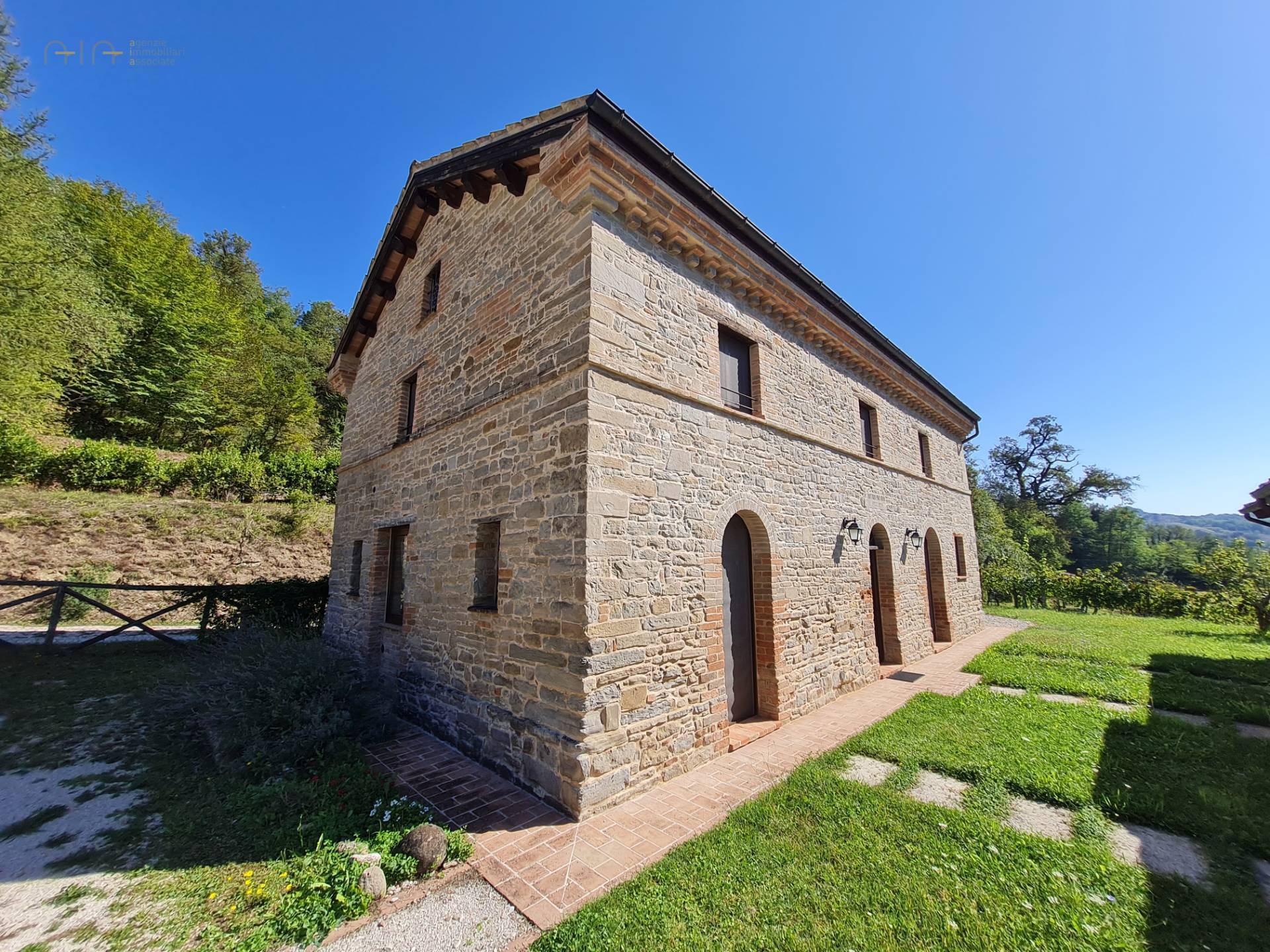 At the center of the property stands a majestic farmhouse dating back to around 1875, completely and expertly restored, maintaining the typical and traditional characteristics of this area. The exposed stone walls, the wooden ceilings and the wooden architraves on the windows, are really beautiful.