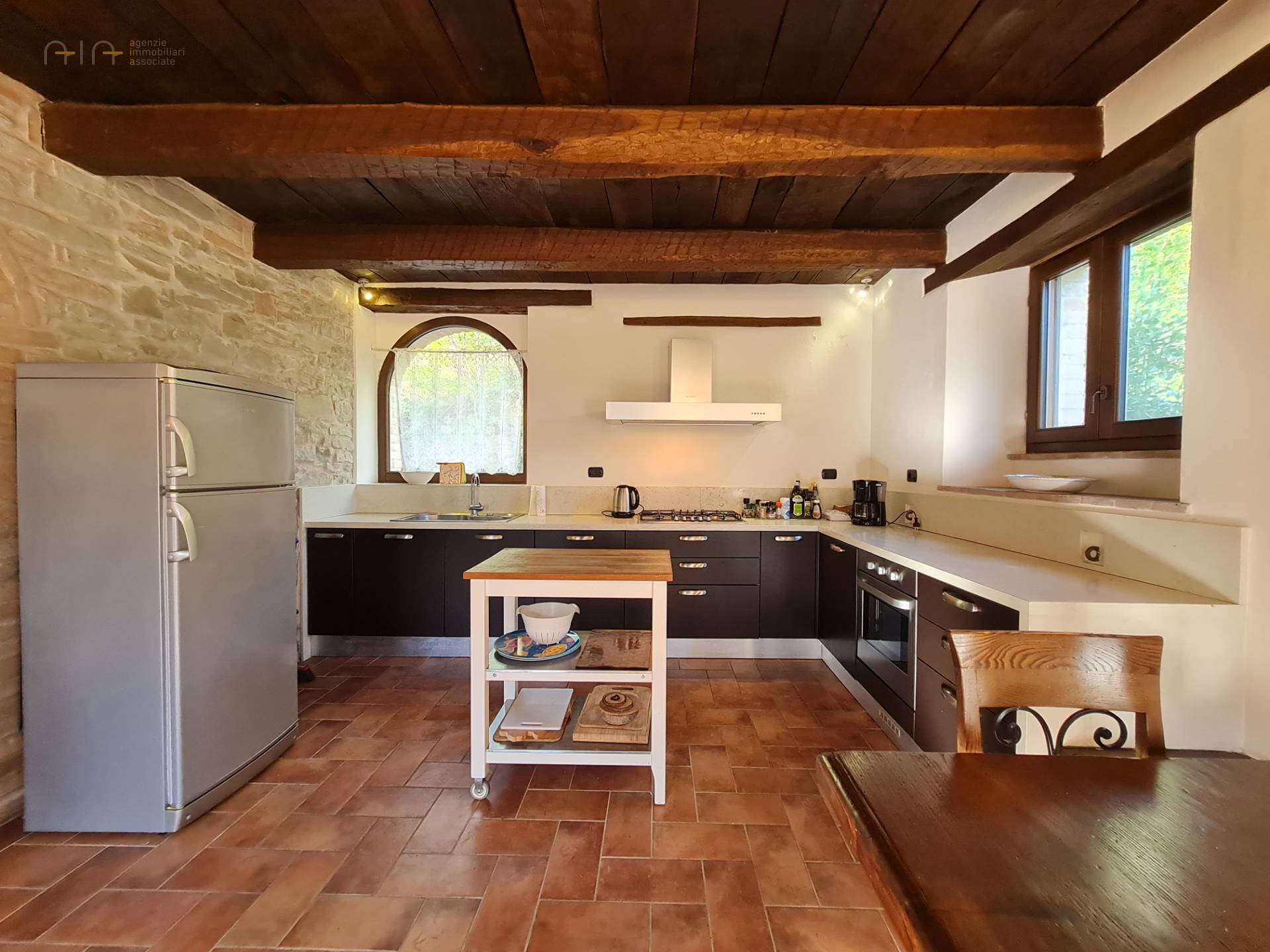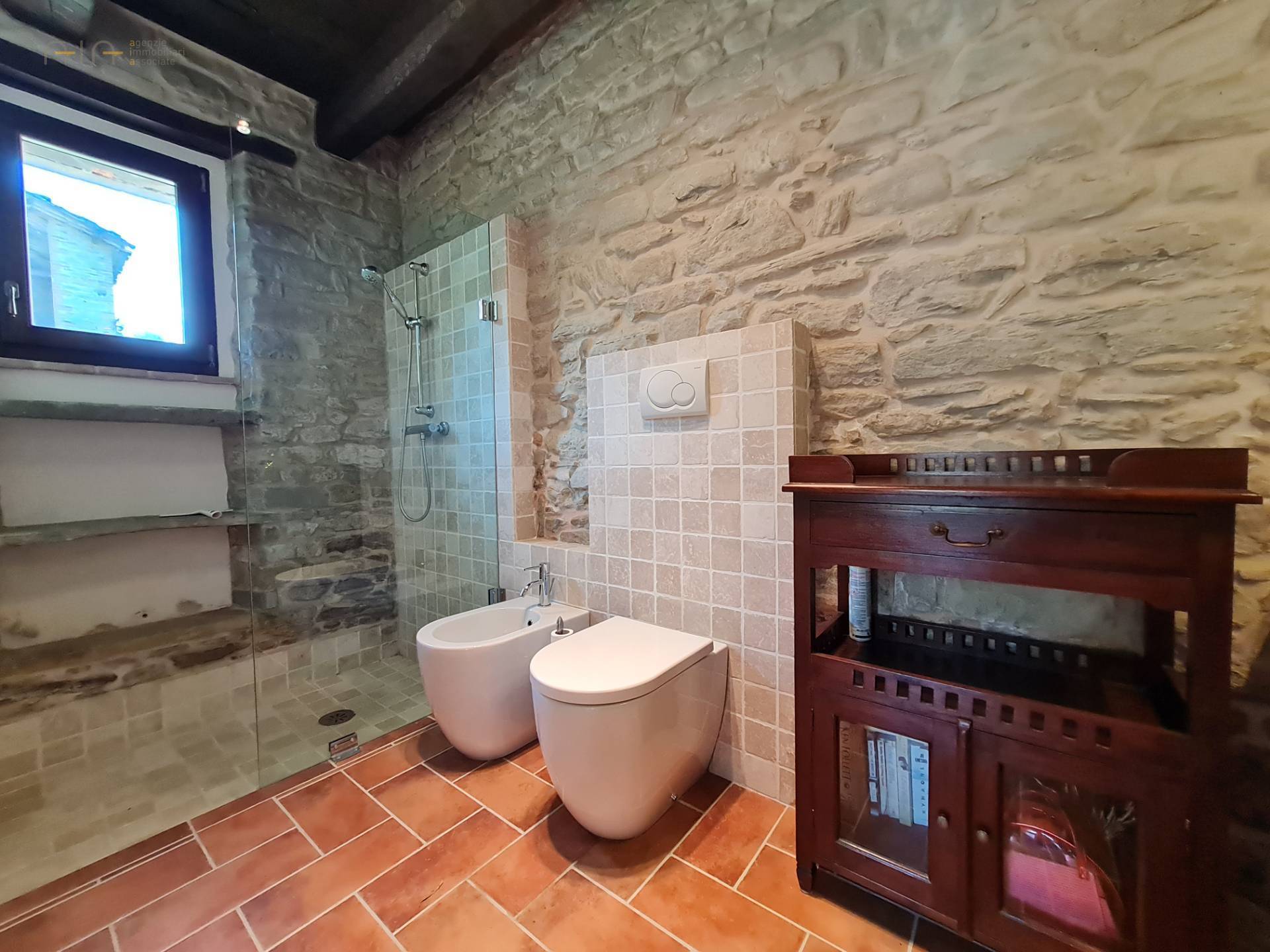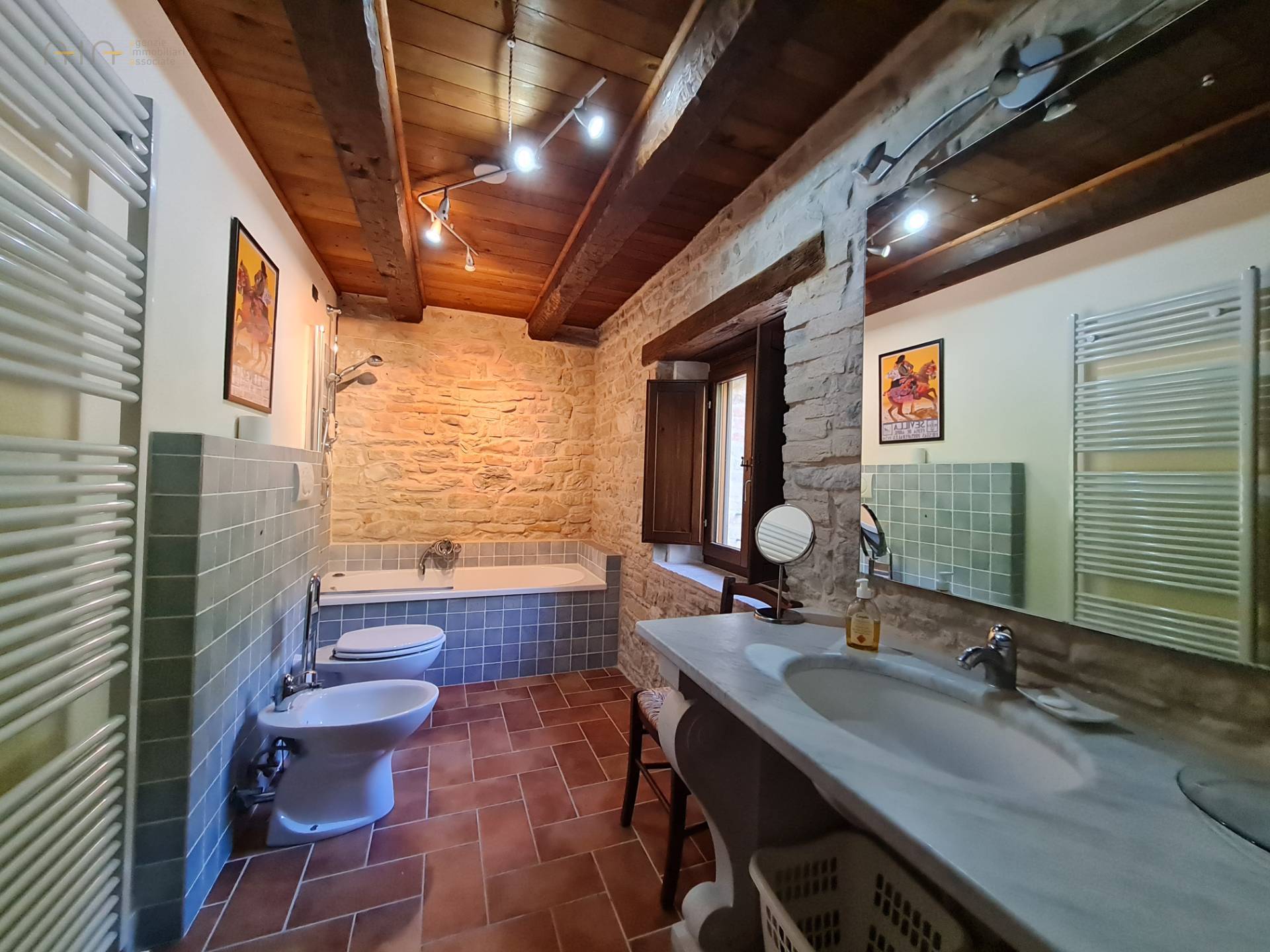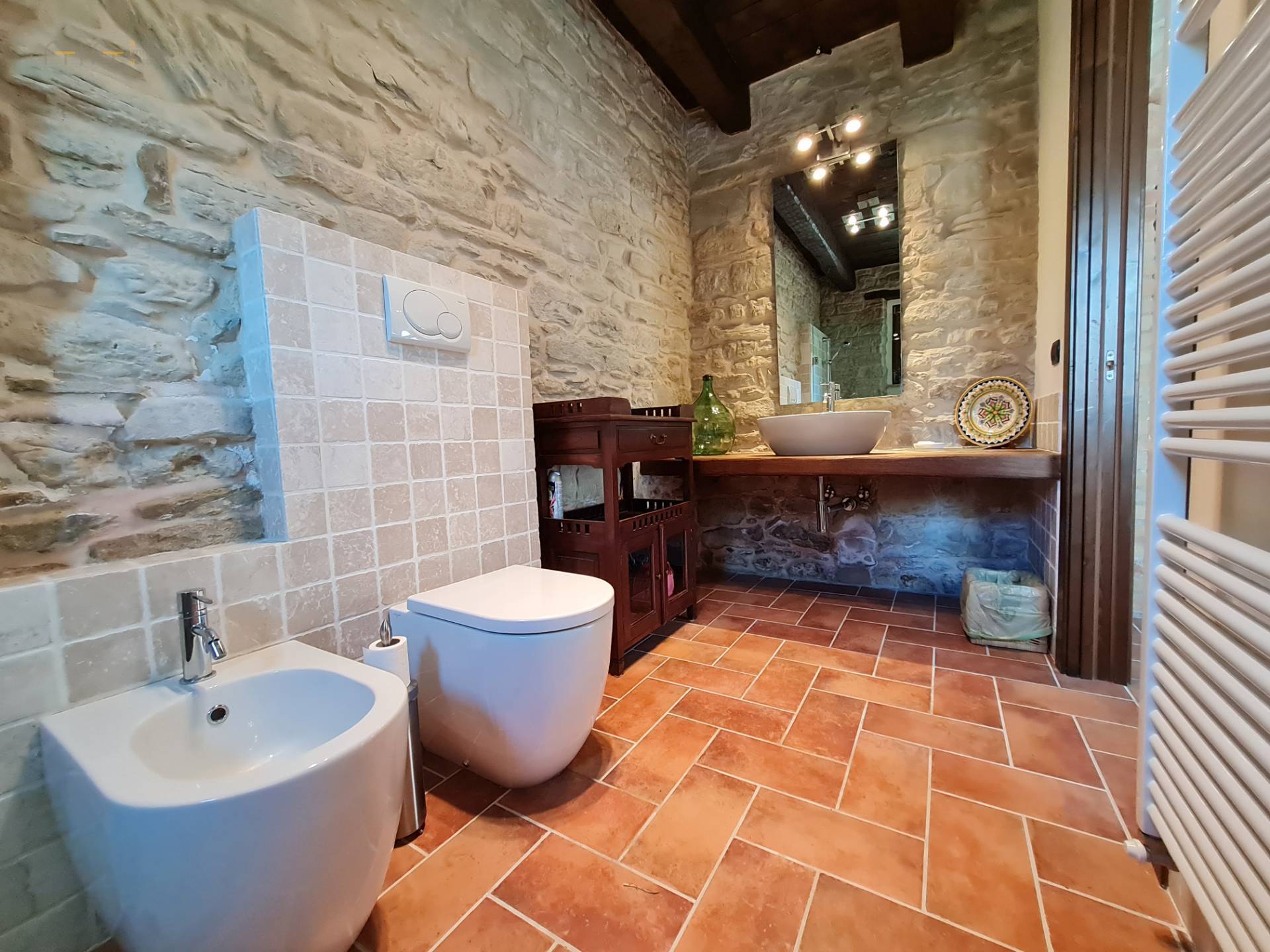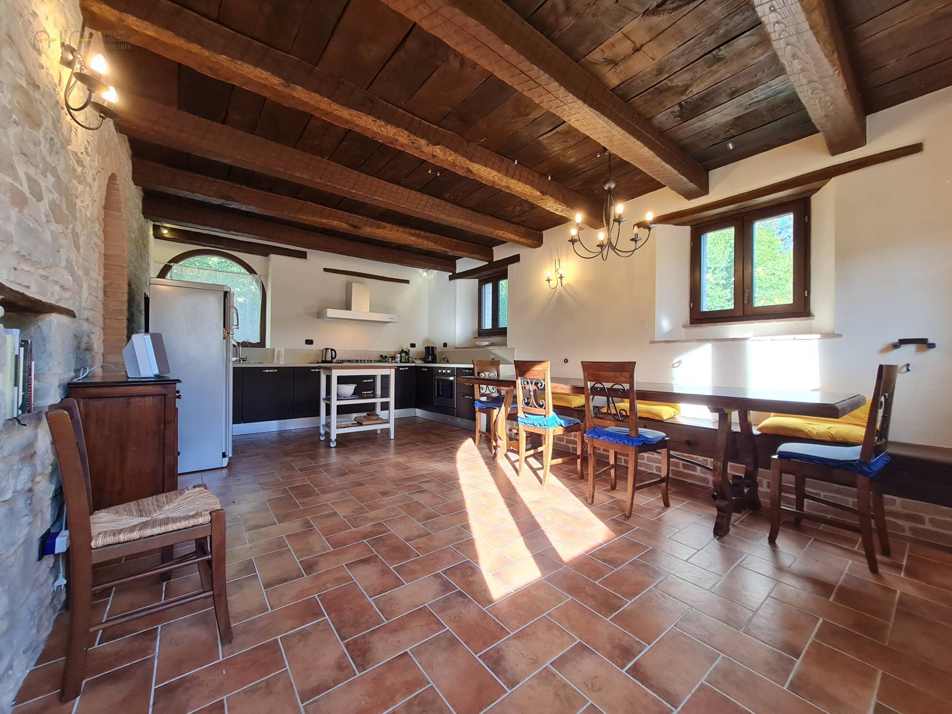 A few meters from the main house, a comfortable multipurpose annex has been renovated with bathroom, traditional oven, laundry, technical room for the swimming pool and large garage/storage room, as well as a beautiful porch with terrace. Note the solar panels on the roof used for the production of domestic hot water.