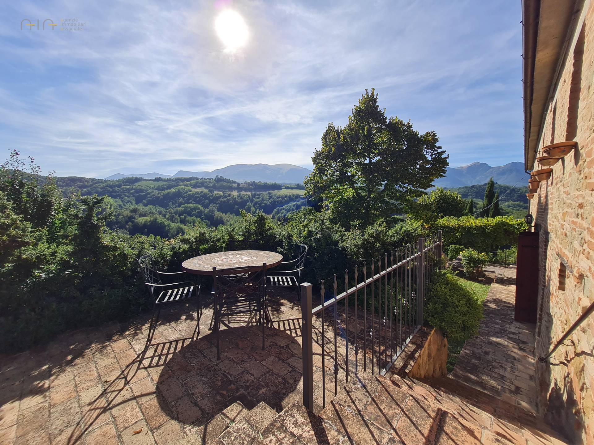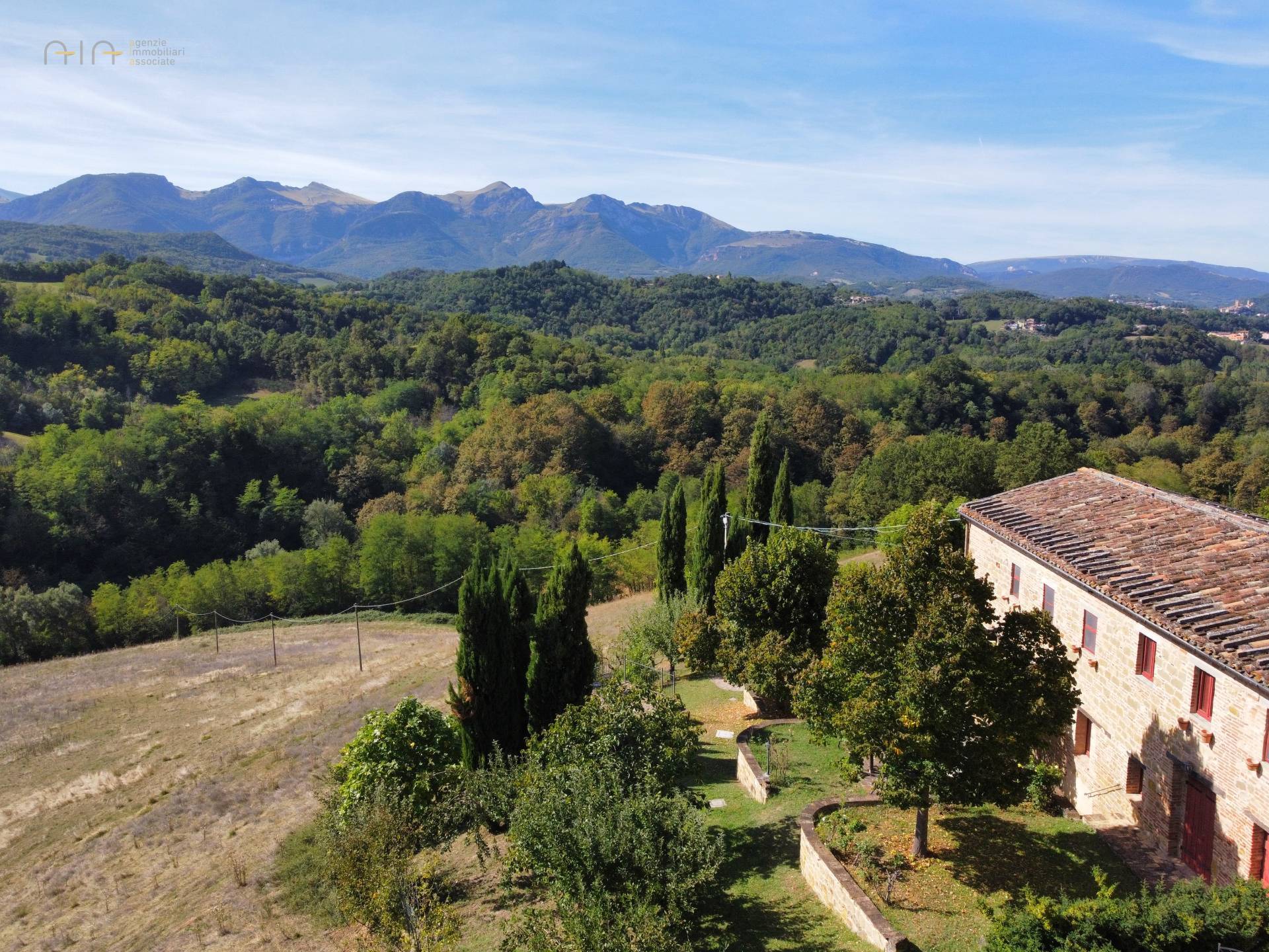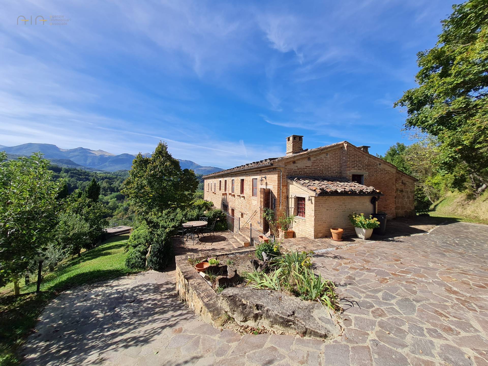 Surrounded by uncontaminated nature, with incredible views of the Sibillini Mountains, majestic restored farmhouse with swimming pool and large panoramic garden.