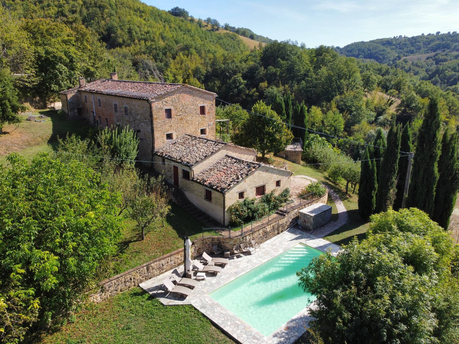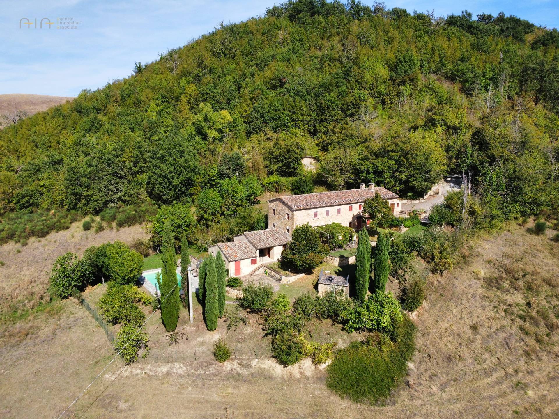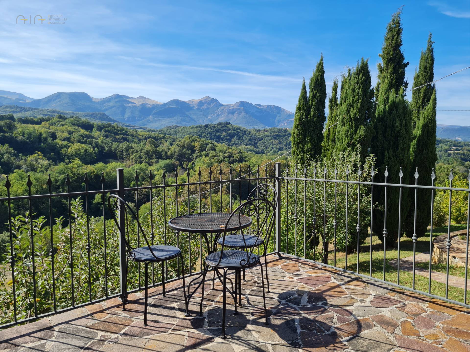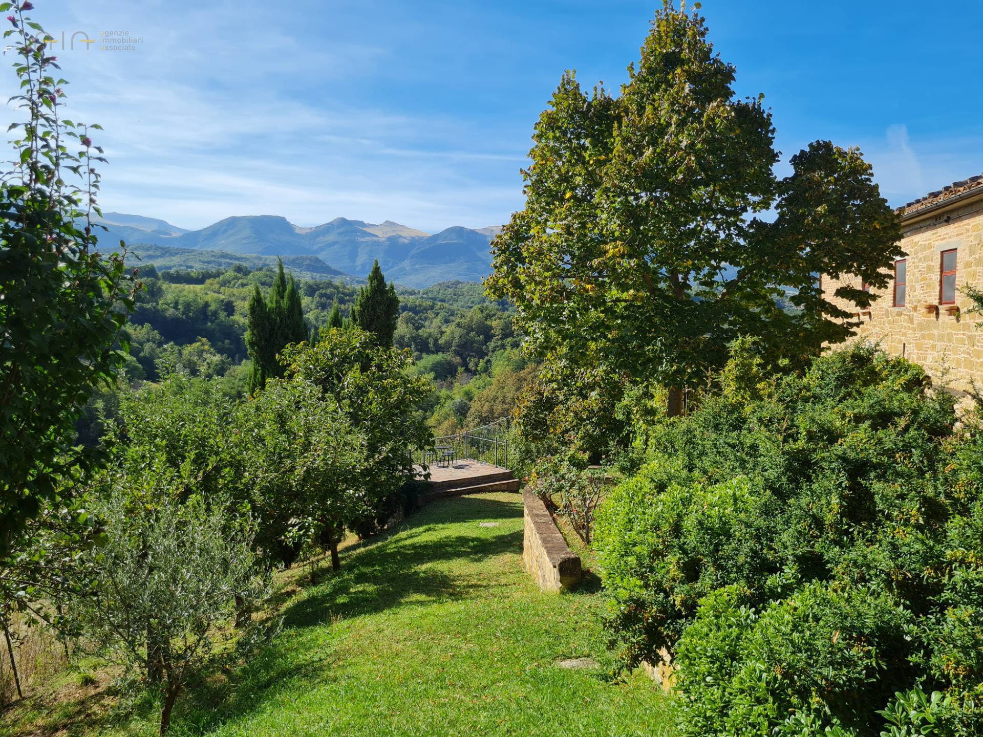 Surrounded by uncontaminated nature, with incredible views of the Sibillini Mountains, majestic restored farmhouse with swimming pool and large panoramic garden.