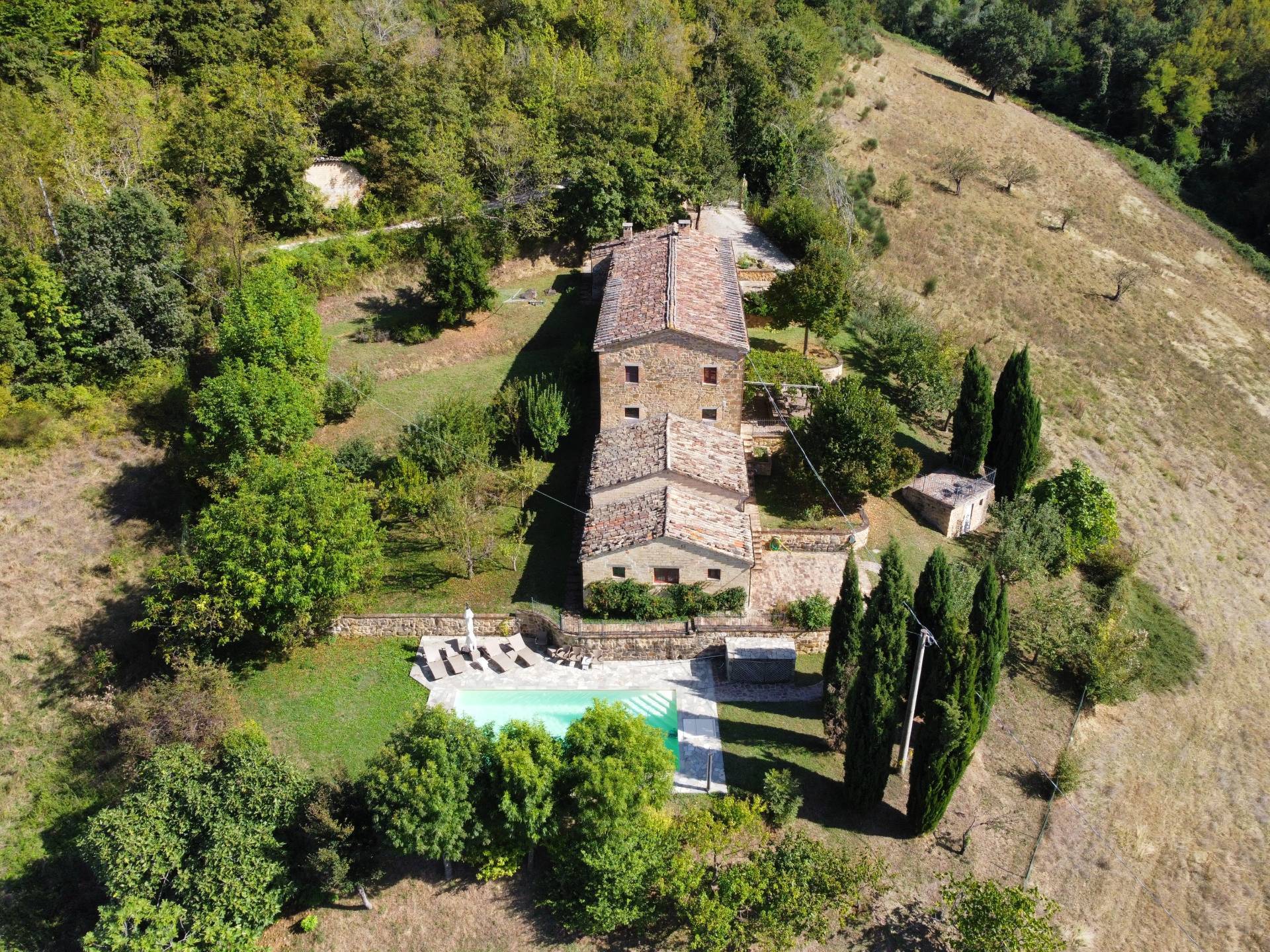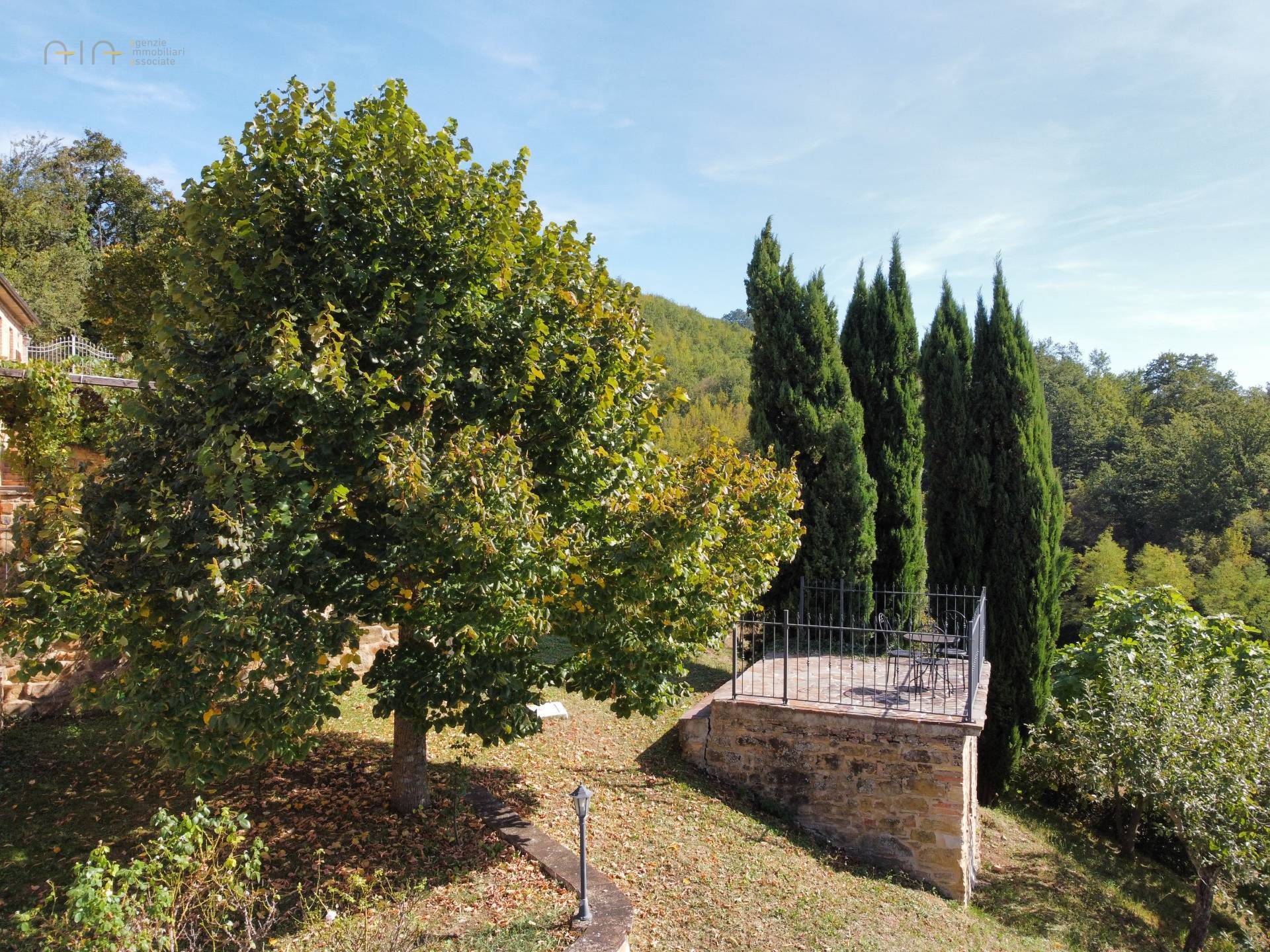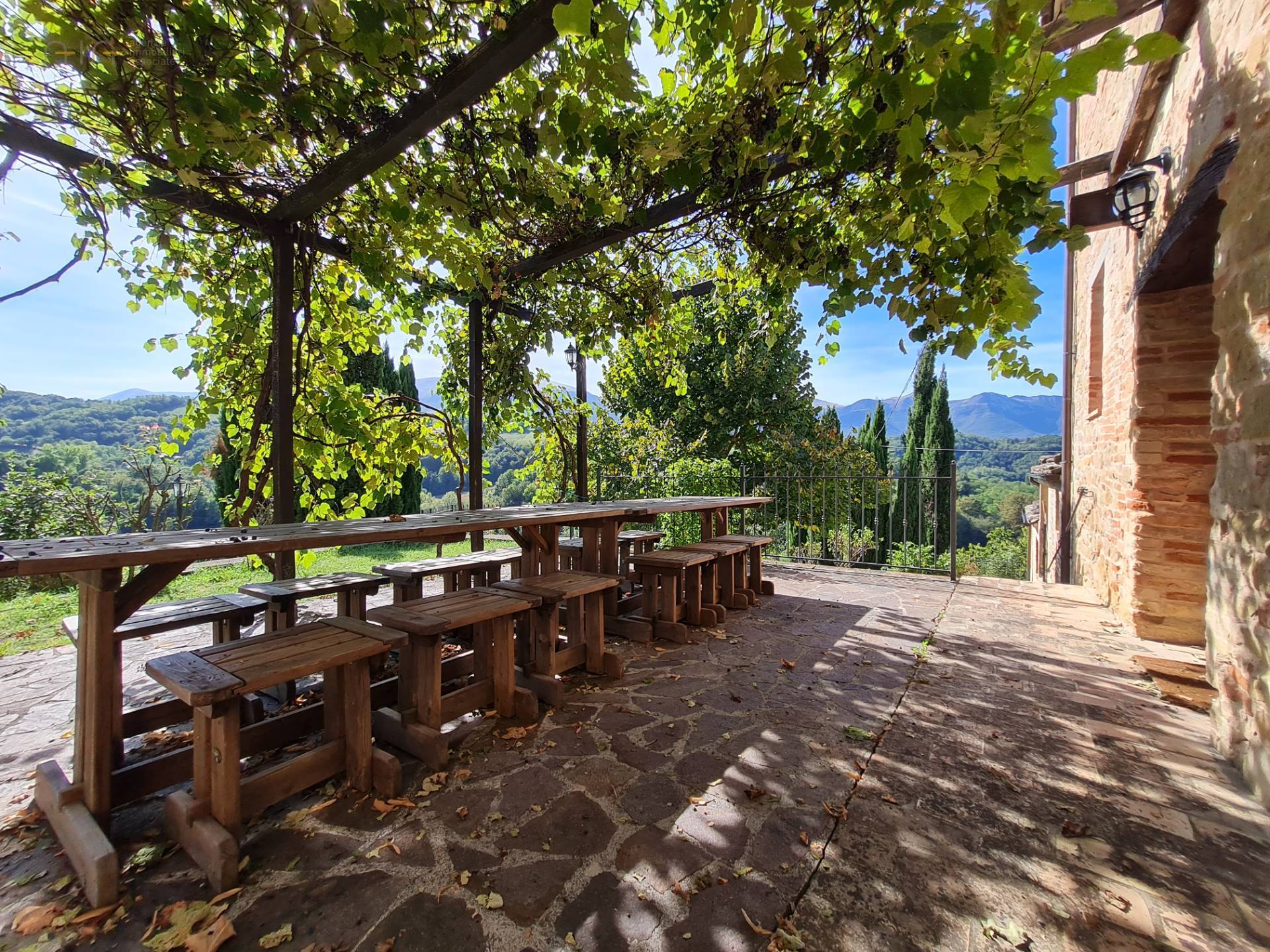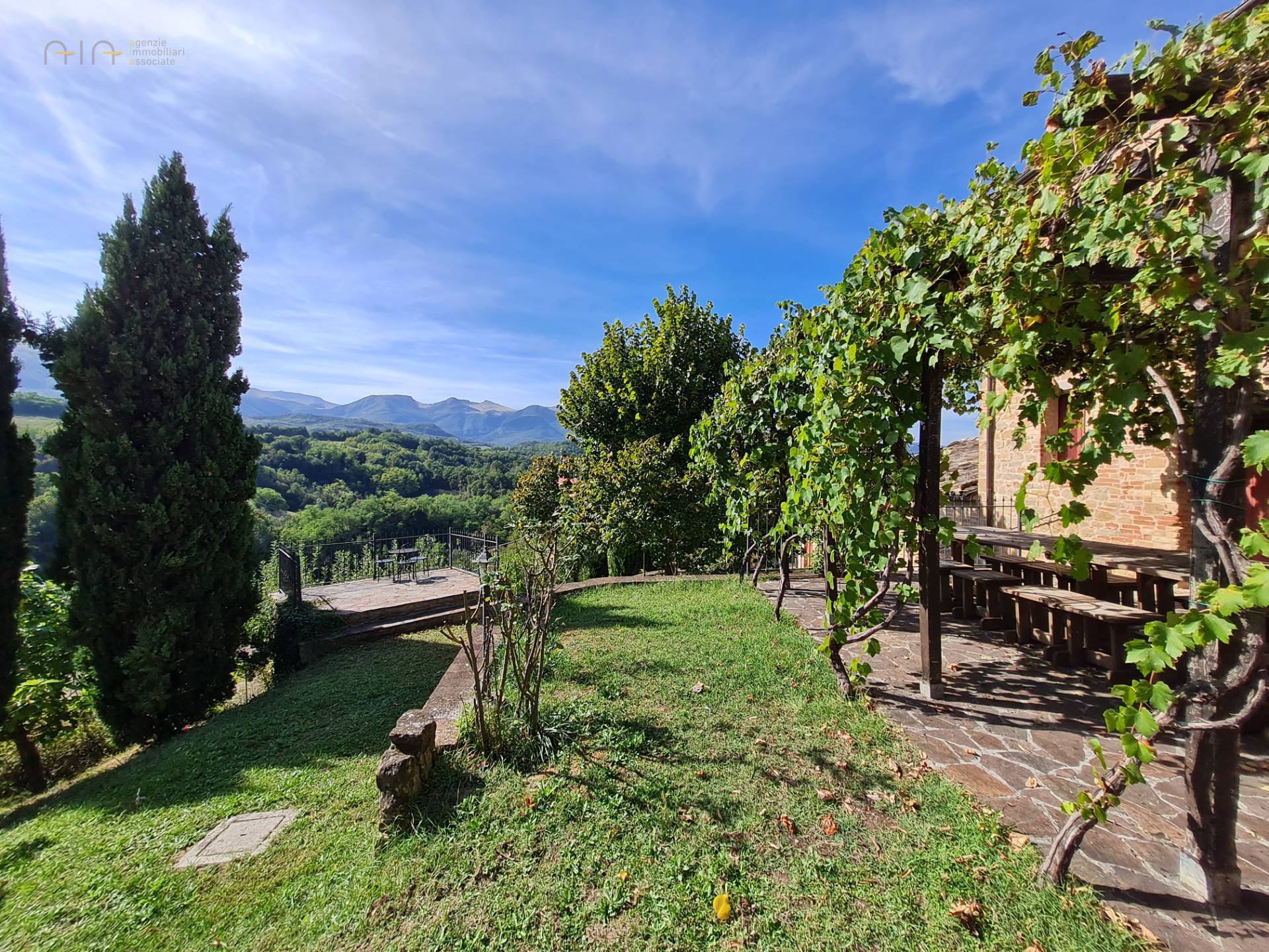 The farmhouse is located on top of a hill and is adorned by a delightful garden full of fruit plants and wooded areas.
