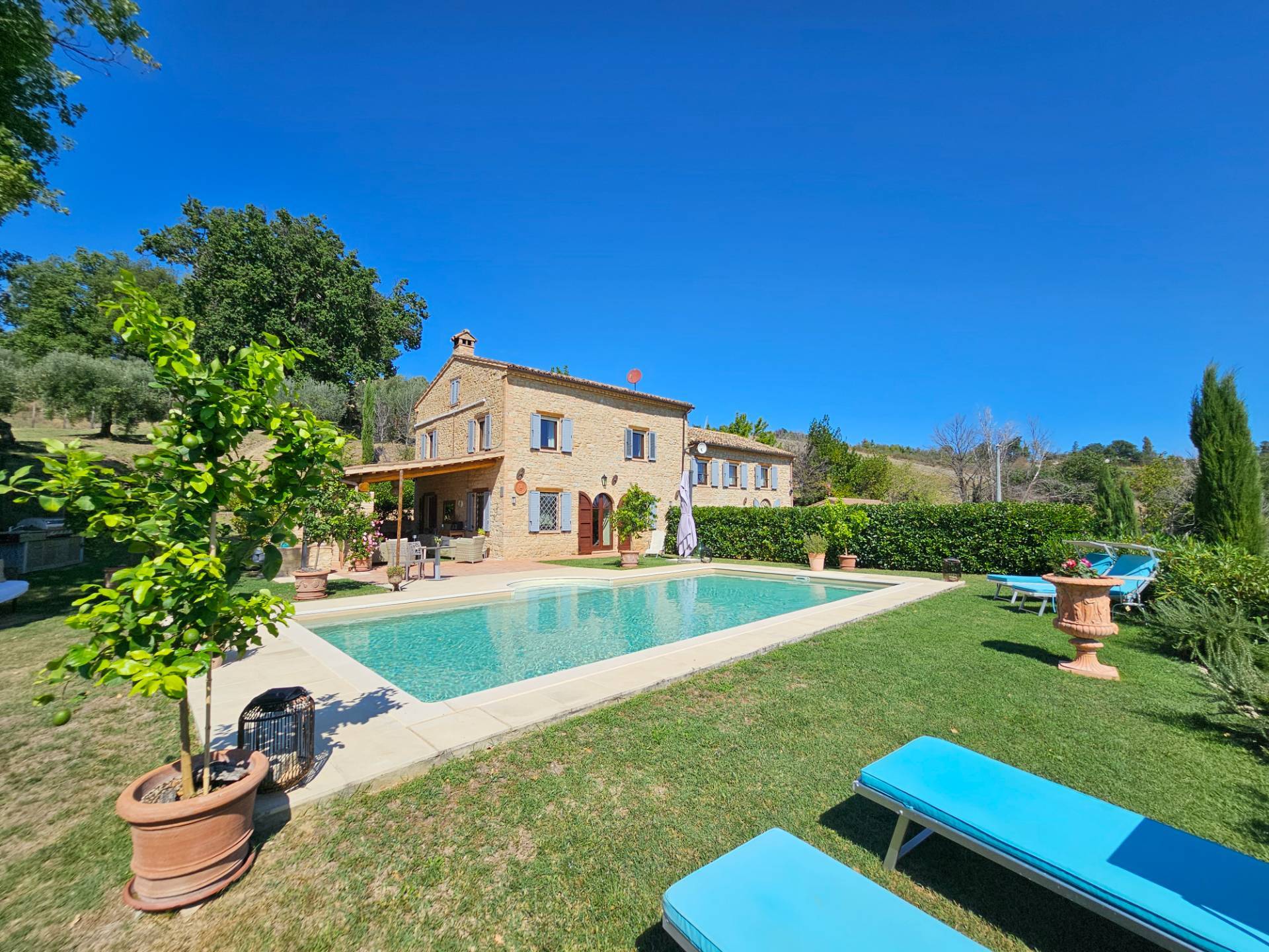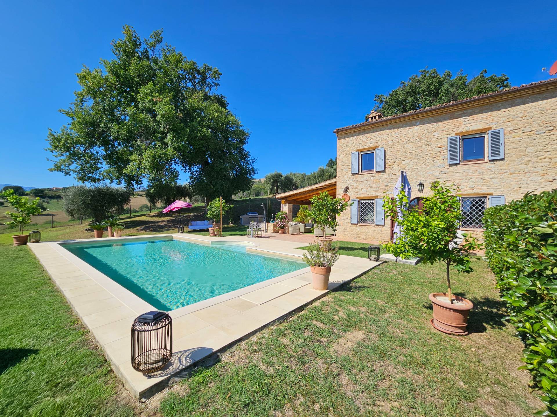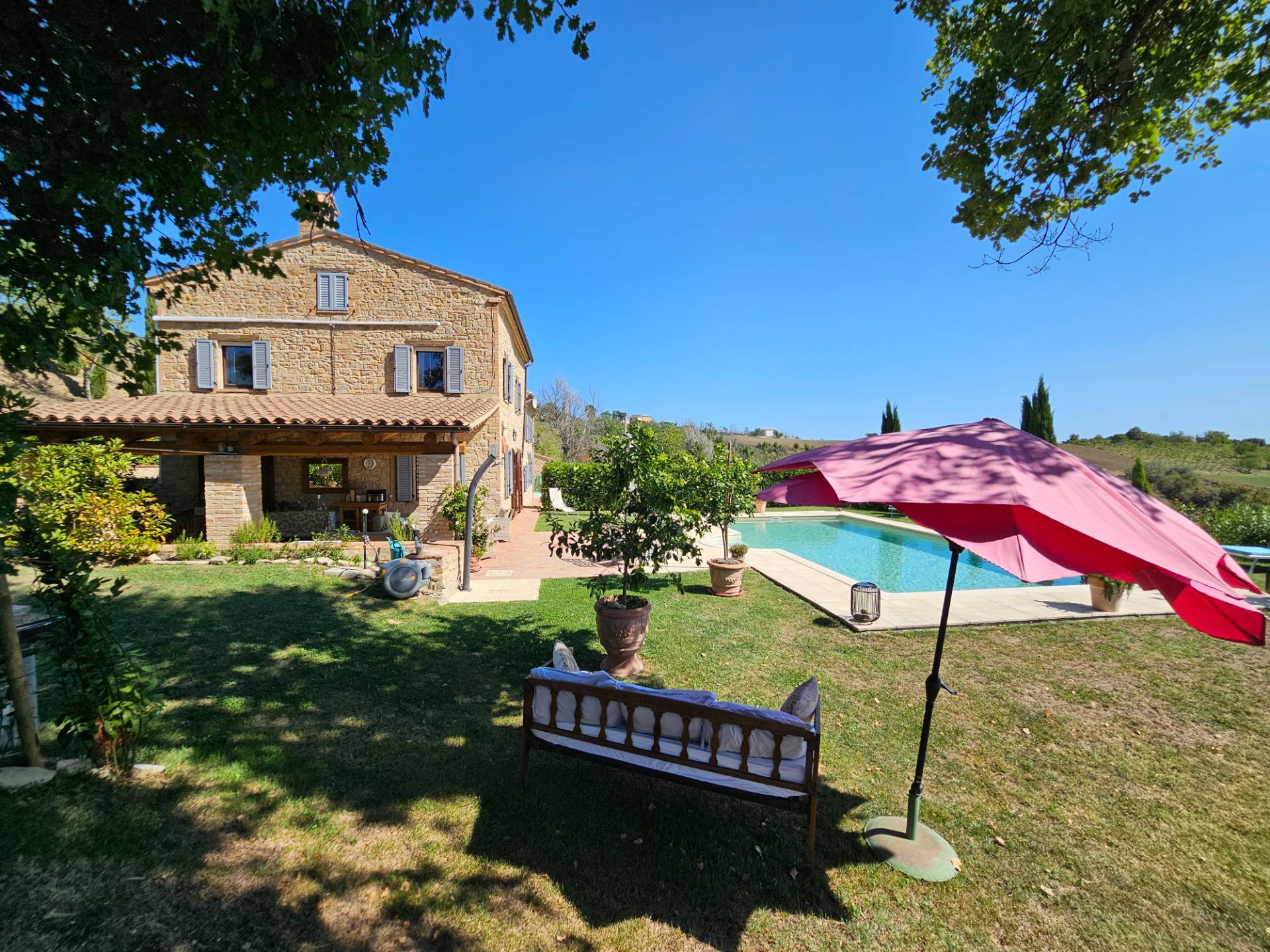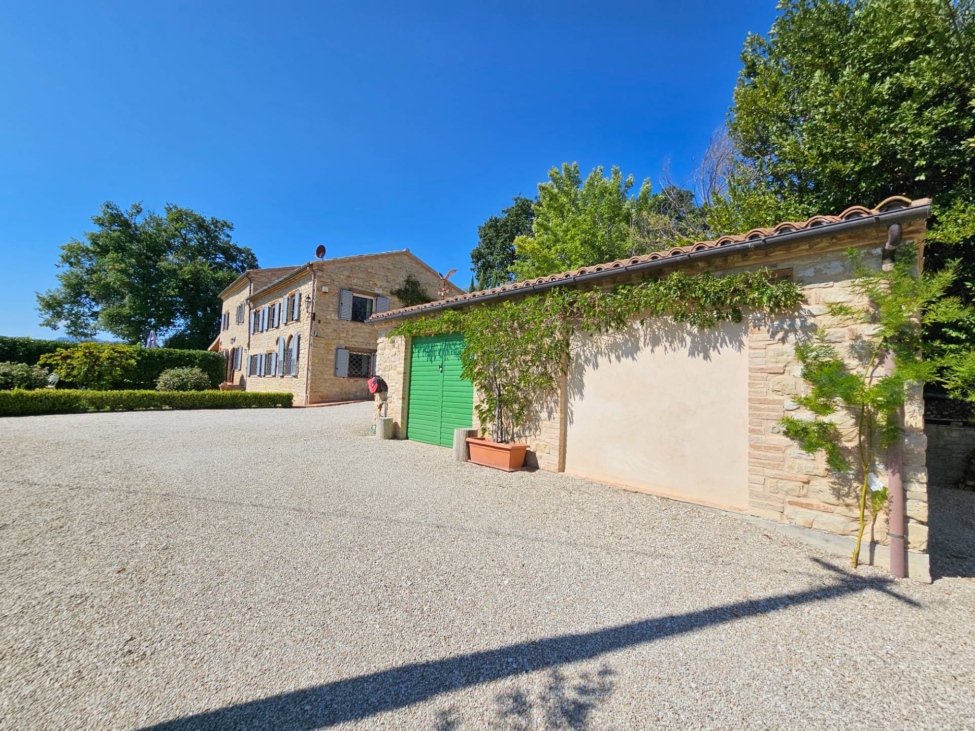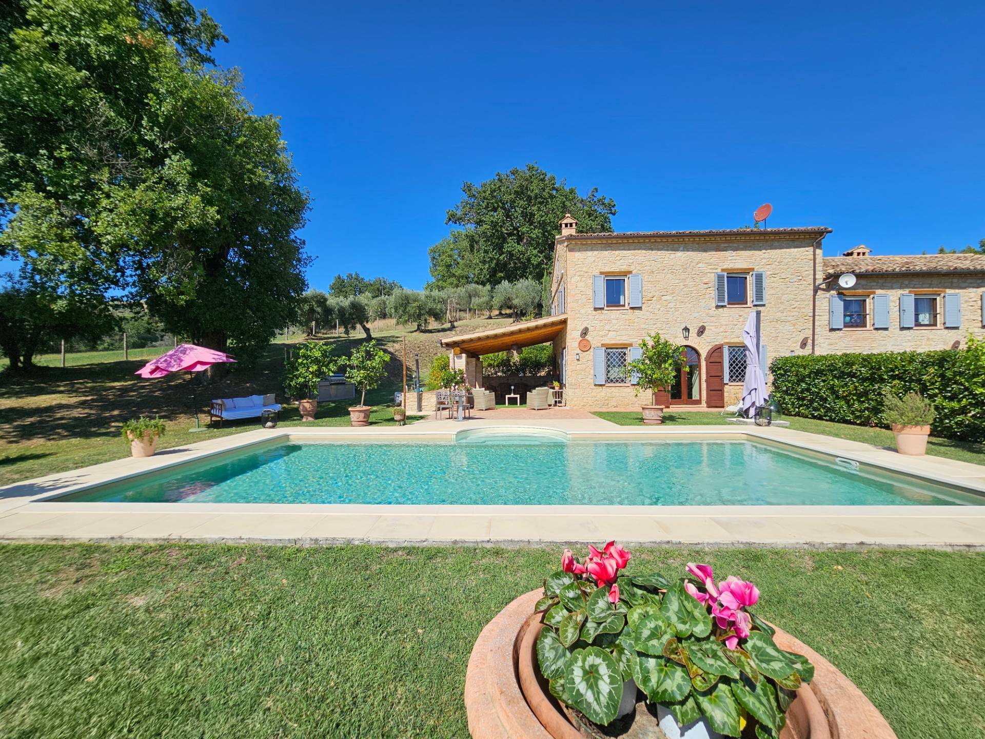 Nella splendida cornice della campagna marchigiana a pochi chilometri dalla città di Macerata, con meravigliosa vista panoramica, caratteristico casale in pietra ristrutturato con piscina in Vendita.