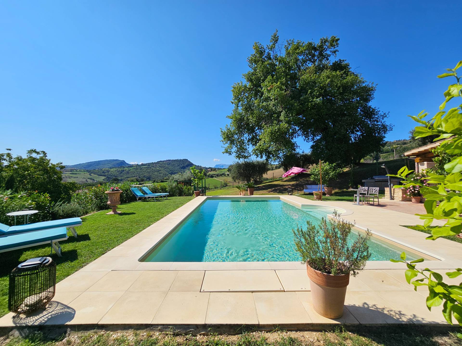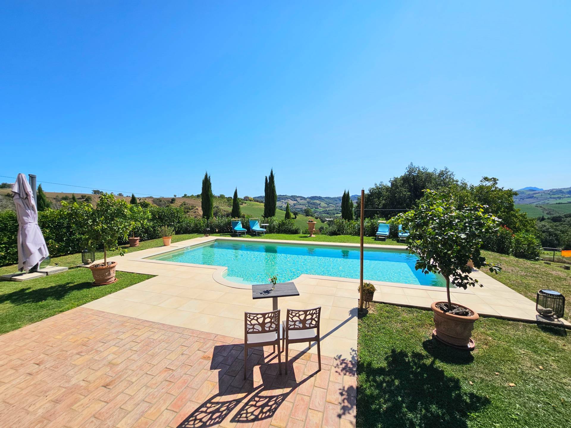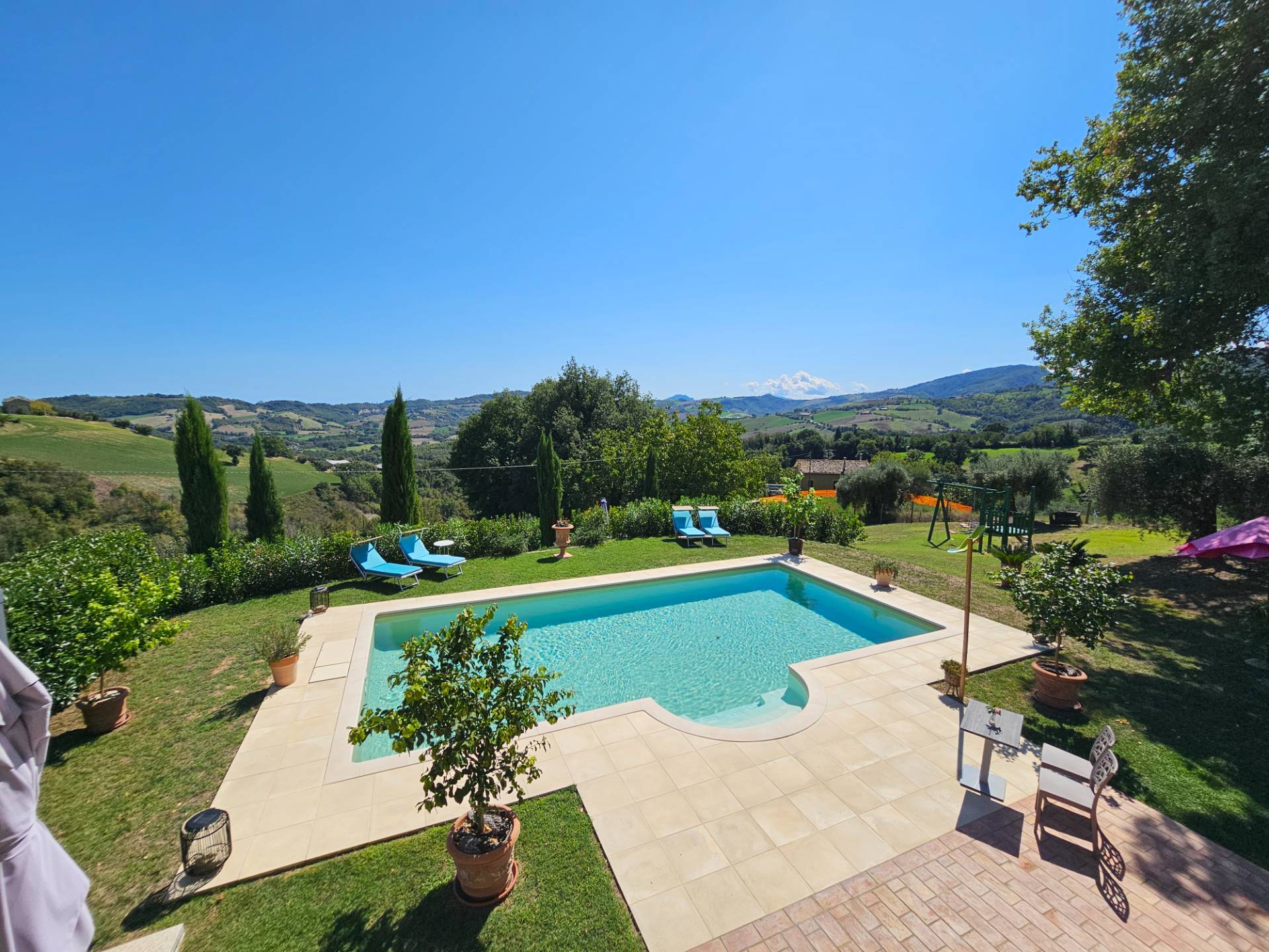 L'esposizione a sud dona una splendida luce naturale e una vista mozzafiato sul paesaggio circostante e sui Monti Sibillini, mentre il giardino privato con la piscina (mt.10.00x5.00) offre uno spazio perfetto per rilassarsi e godere della tranquillità della campagna marchigiana.