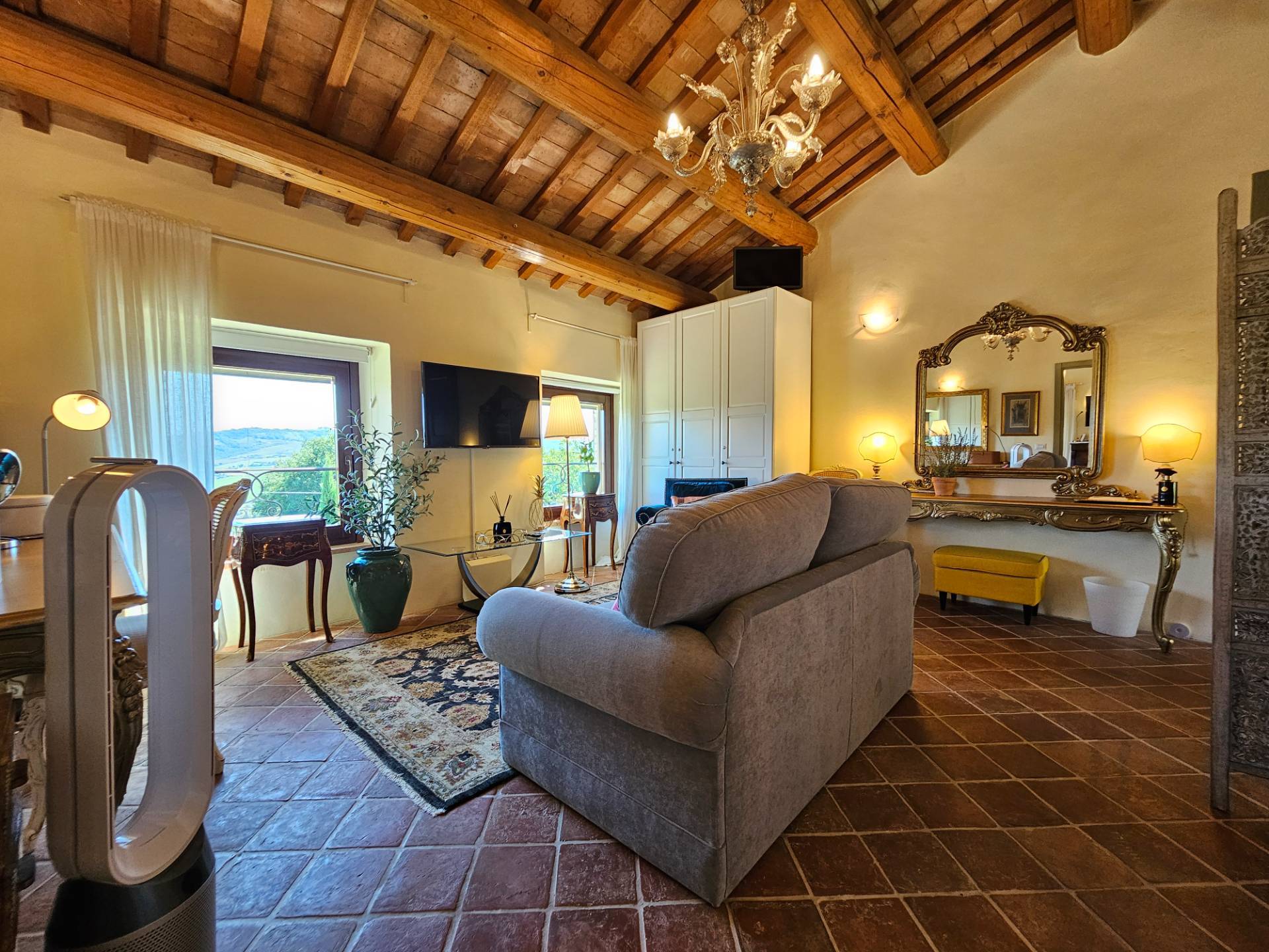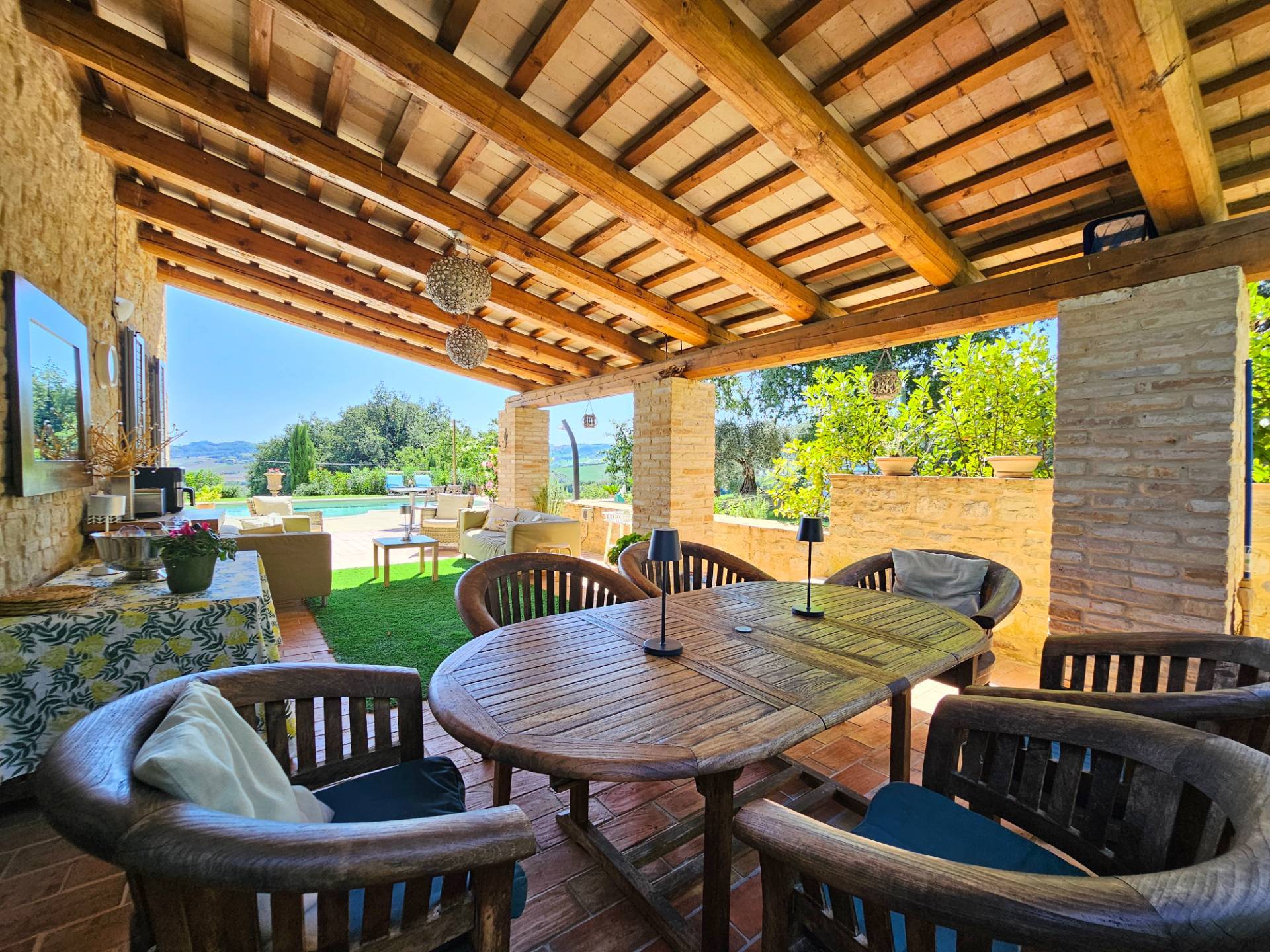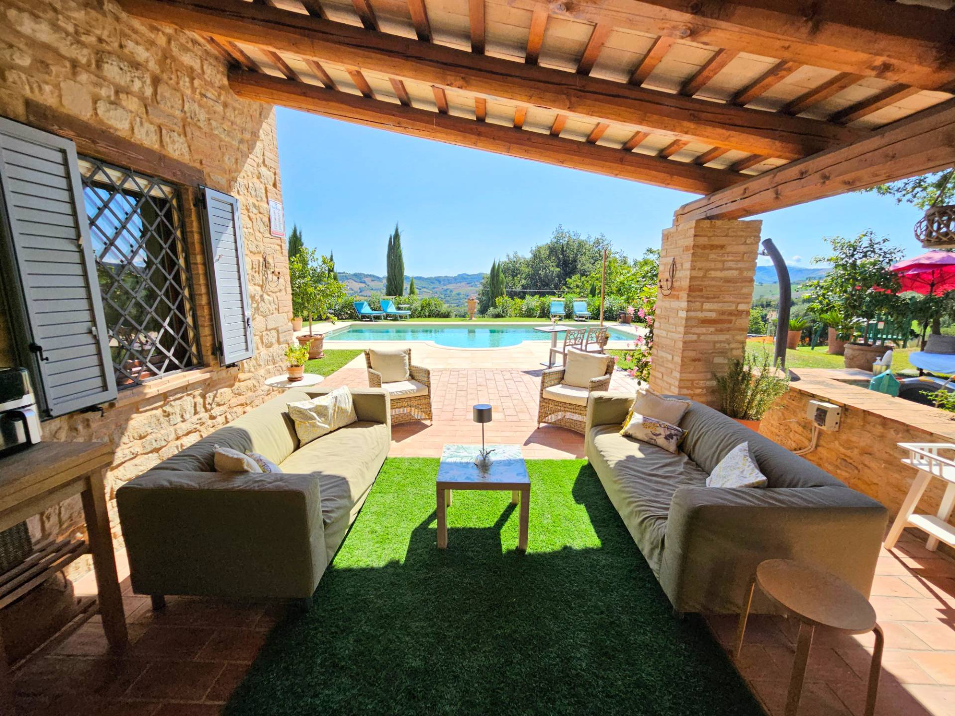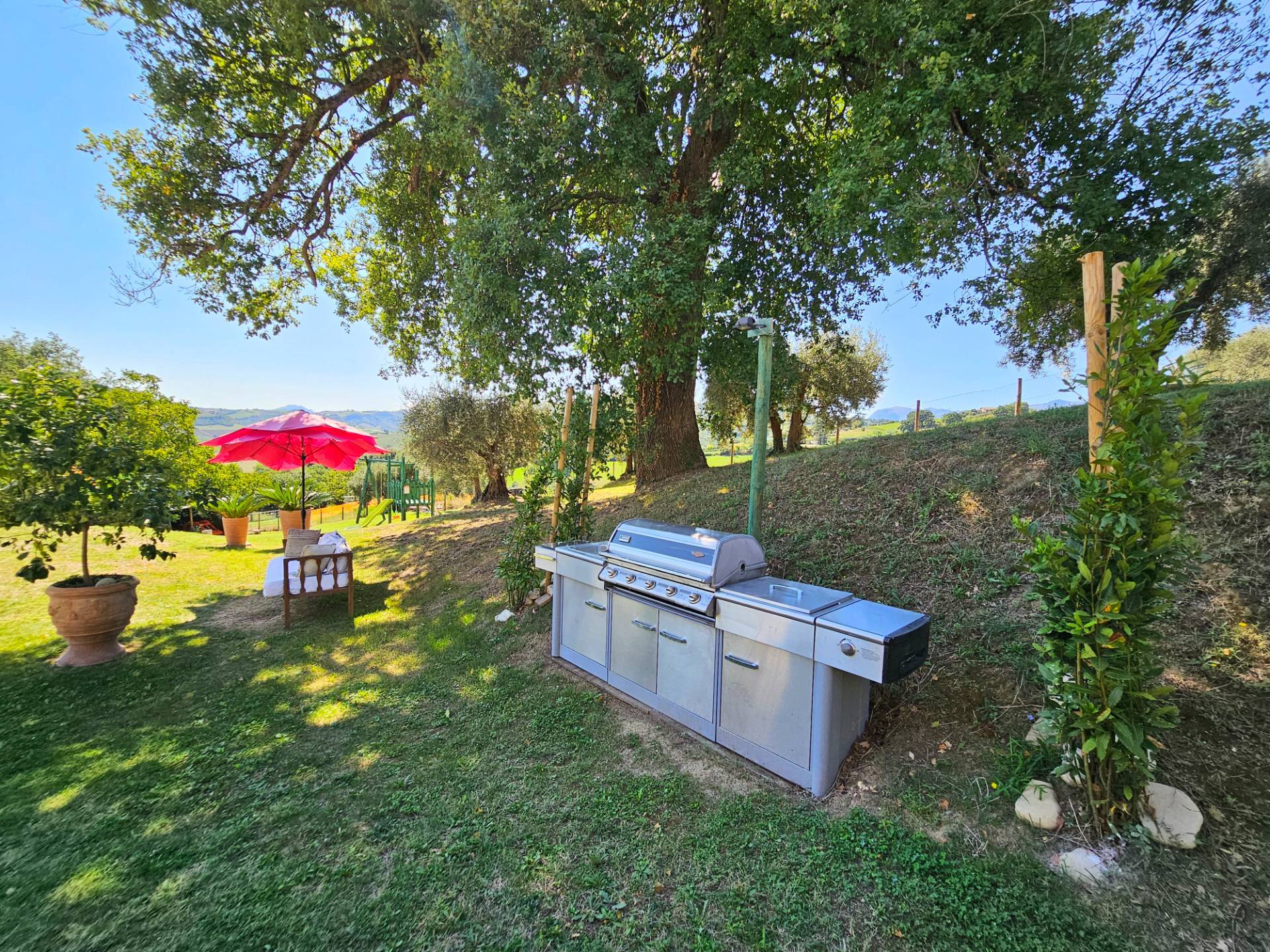 L'esposizione a sud dona una splendida luce naturale e una vista mozzafiato sul paesaggio circostante e sui Monti Sibillini, mentre il giardino privato con la piscina (mt.10.00x5.00) offre uno spazio perfetto per rilassarsi e godere della tranquillità della campagna marchigiana.