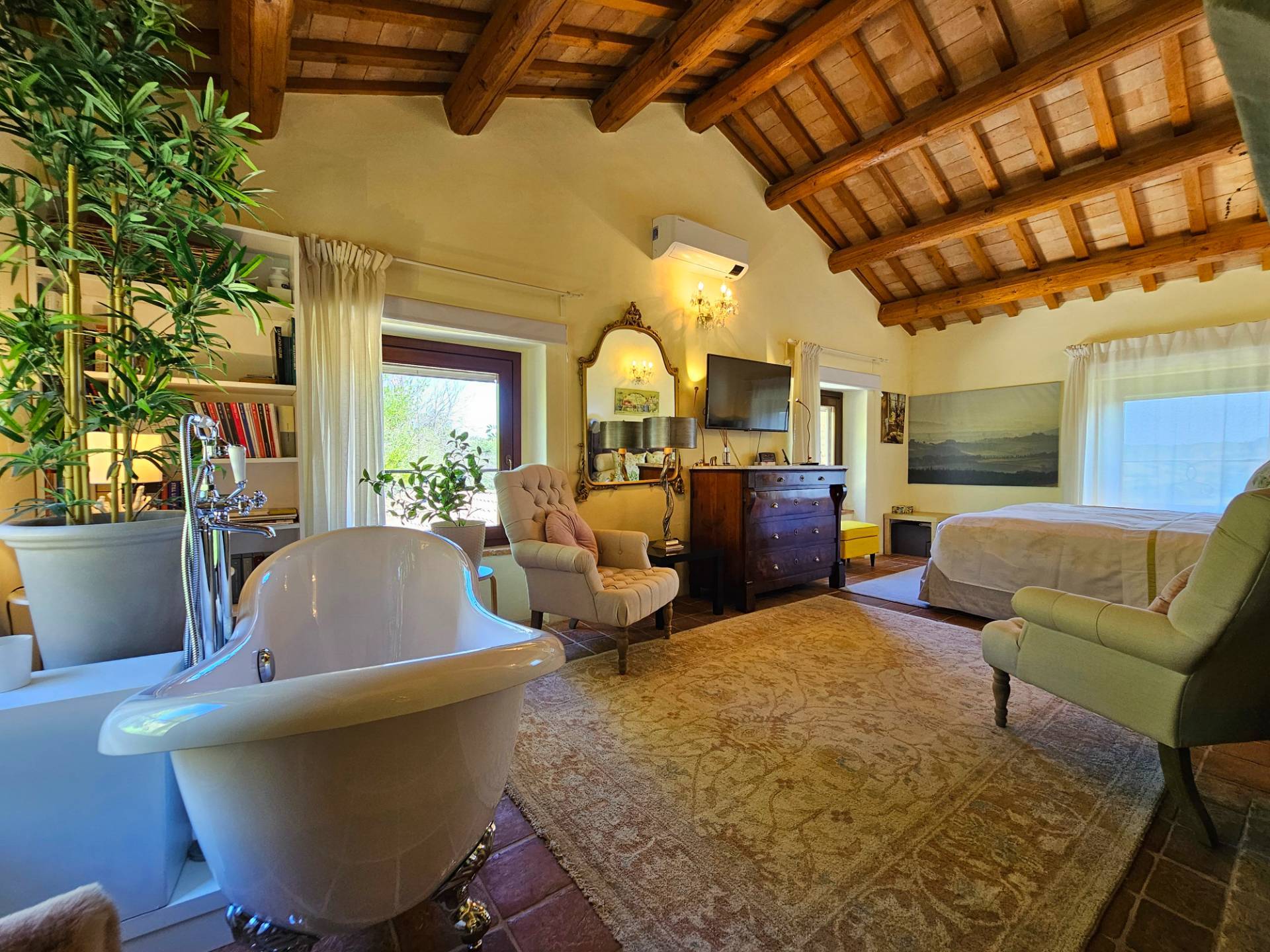 Il casale è stato completamente ristrutturato con grande cura e attenzione ai dettagli, mantenendo intatto il suo fascino originario e rispettando l'architettura tipica delle case coloniche marchigiane.