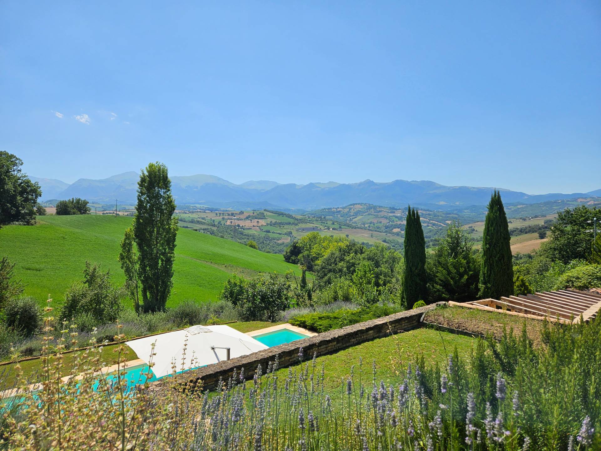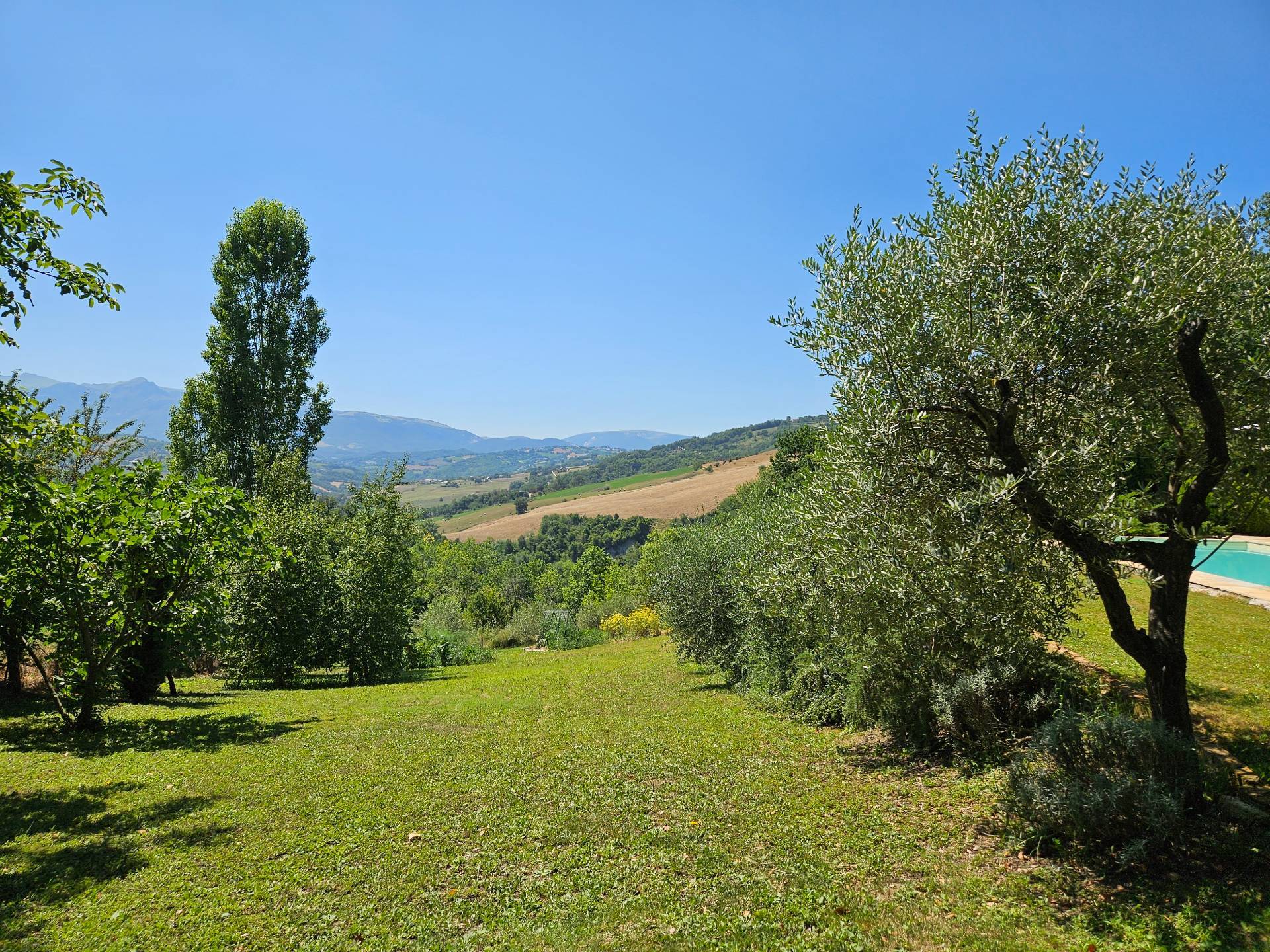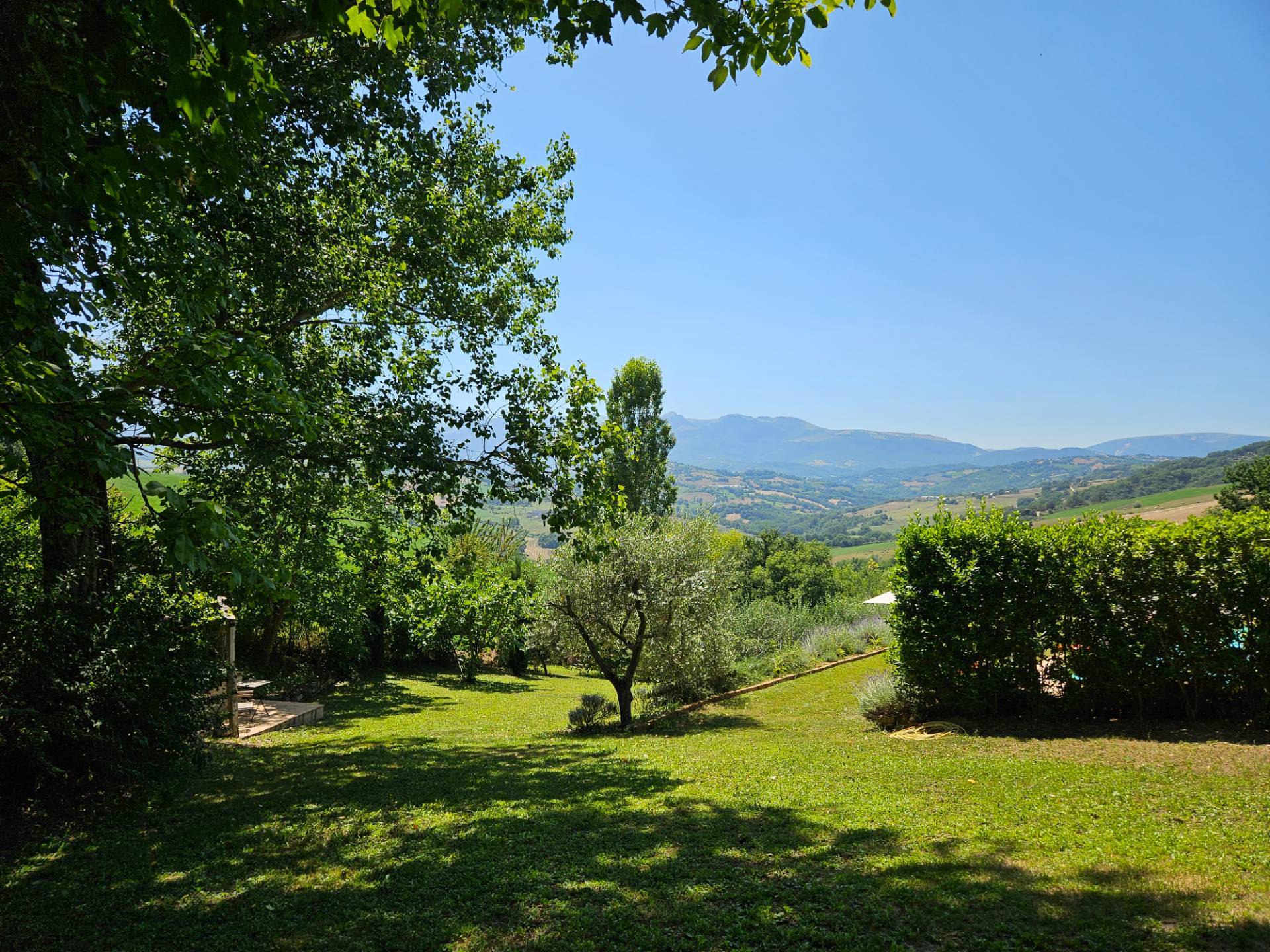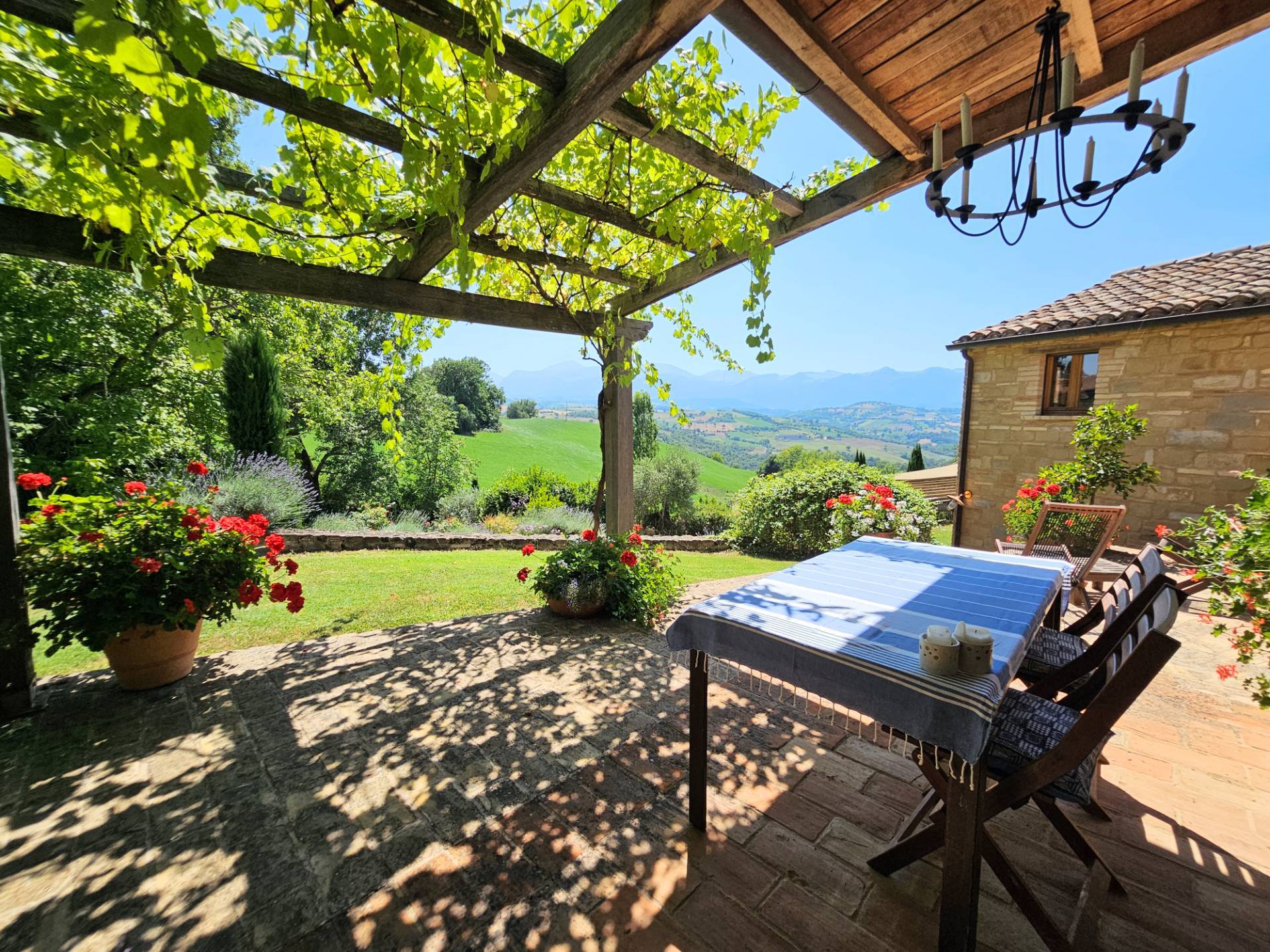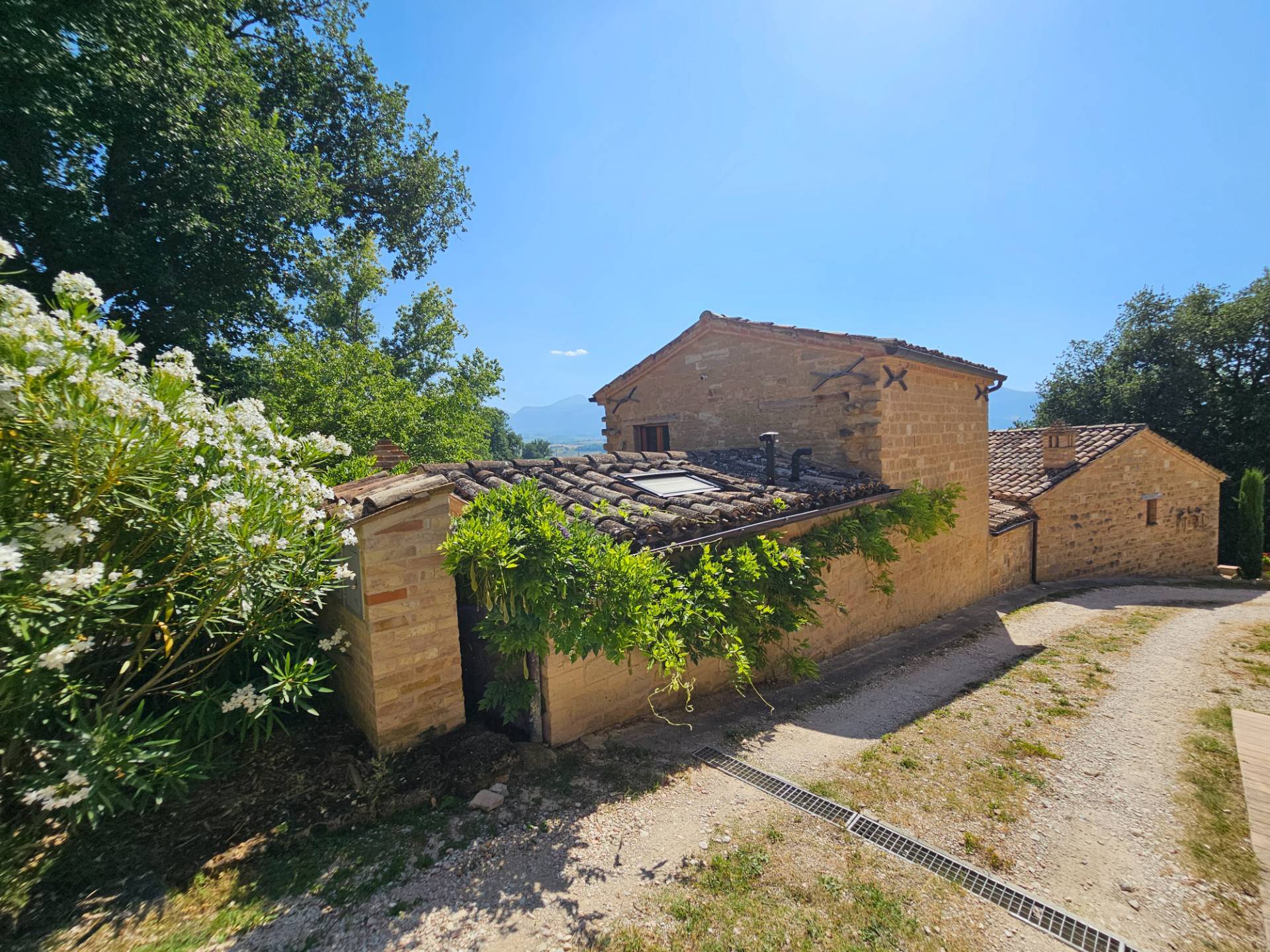 Nel cuore della meravigliosa campagna marchigiana, immerso in un lussureggiante giardino con piscina, incantevole casale ristrutturato con dependance per gli ospiti in Vendita.