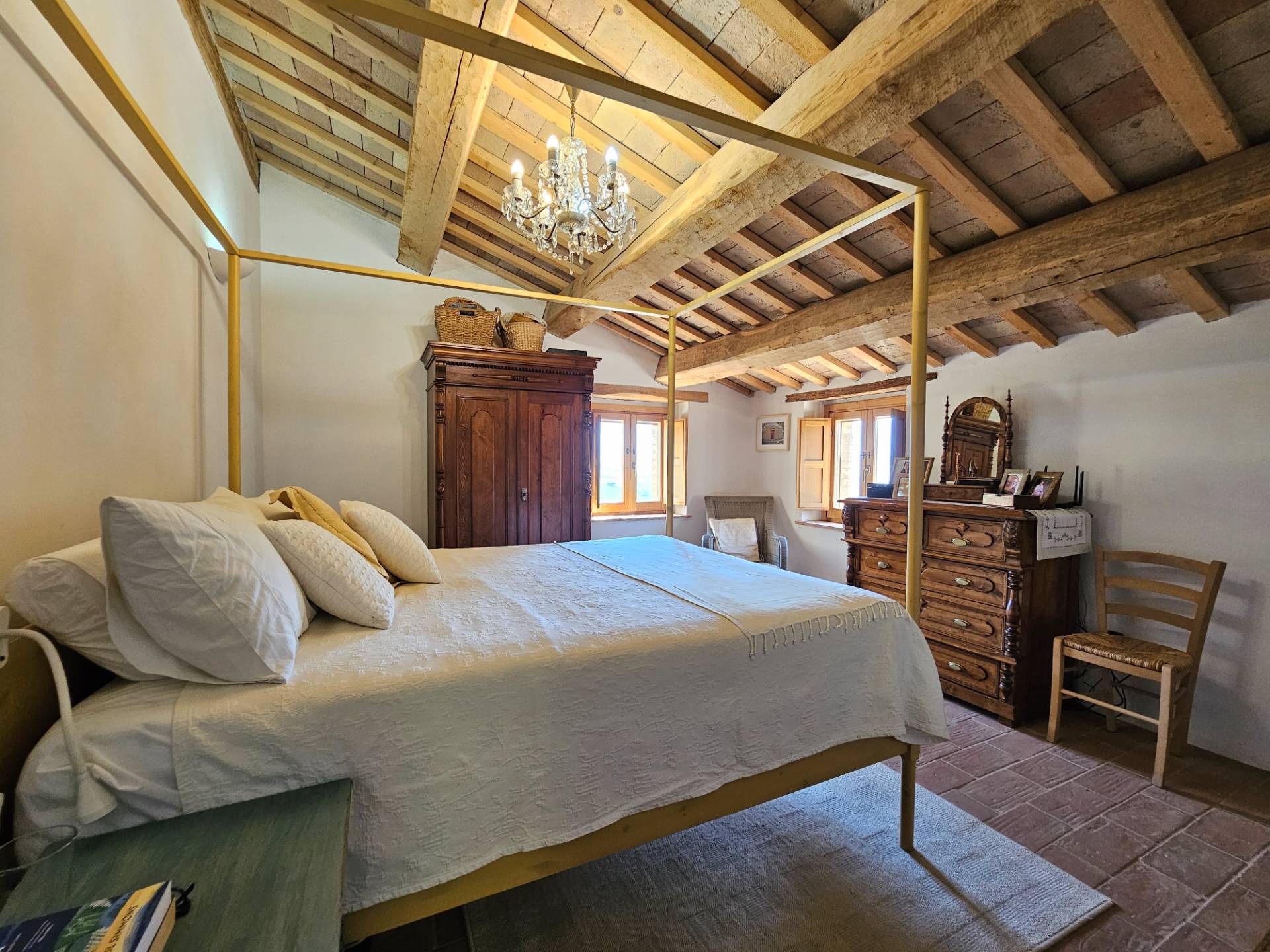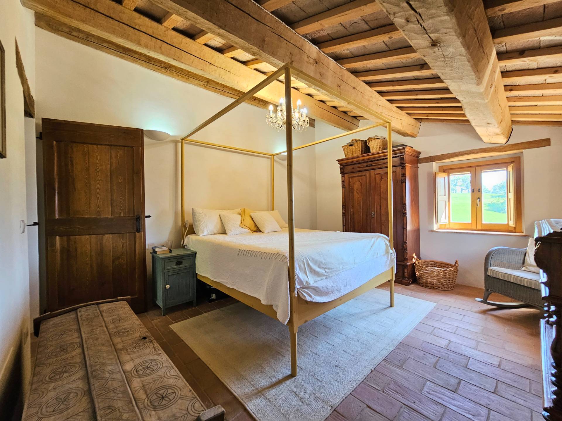 Il casale principale si estende su due piani ed è composto al piano terra da un ampio e luminoso soggiorno, cucina con isola centrale, salotto con camino, lavanderia e ripostiglio. Al piano primo sono state realizzate due camere da letto (di cui una con bagno interno), un bagno ed un salottino d'ingresso.